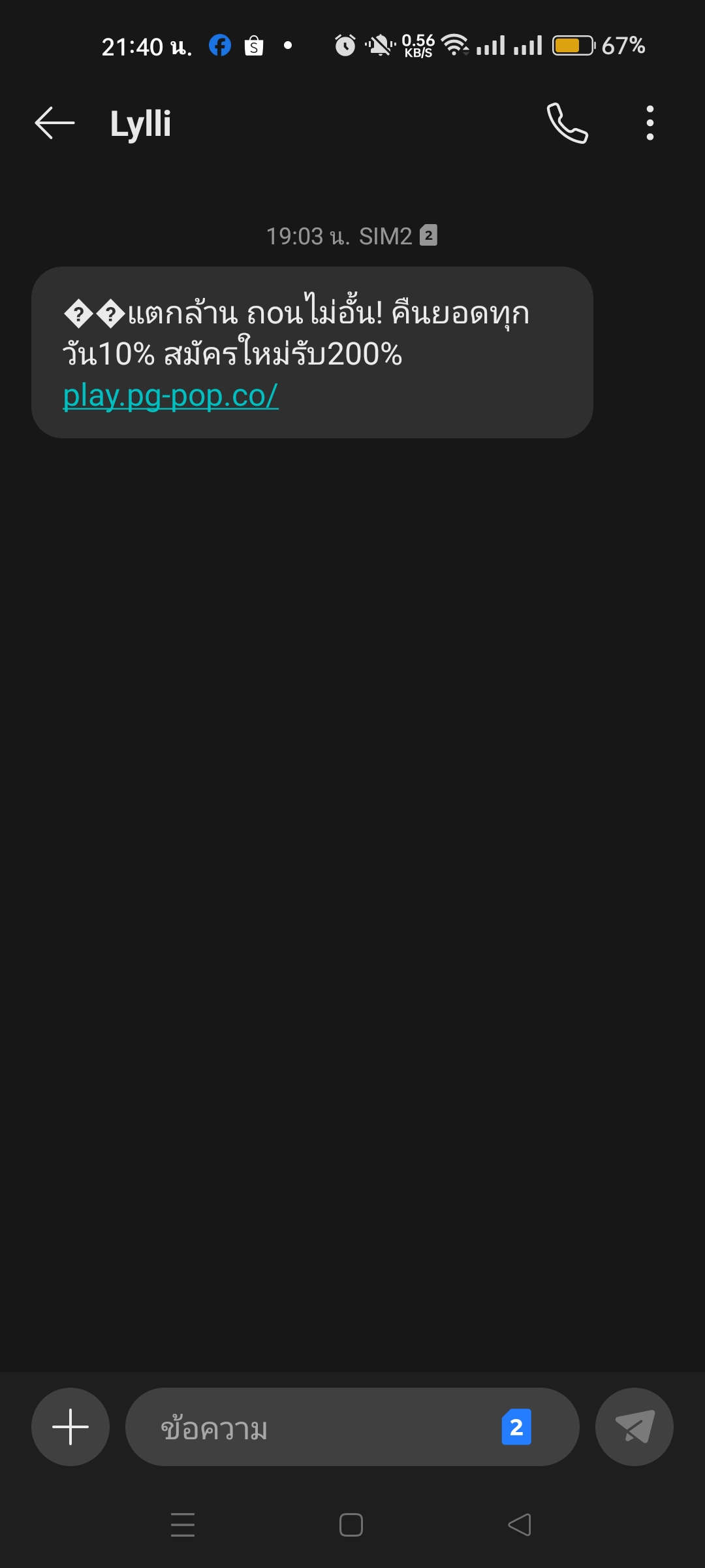 มีลิงค์ เว็บพนันส่งมาบ่อยมาก ส่ง sms ไปที่ 1185 แต่ทางเจ้าหน้าที่แจ้งไว้ว่า ทีมวิศวกรตรวจสอบข้อความ SMS ที่คุณแจ้ง พบว่าไม่ใช่ข้อความมิจฉาชีพ ซึ่งคุณสามารถตั้งค่าบล็อกข้อความที่ตัวเครื่องได้ ดูวิธีตั้งค่า คลิก