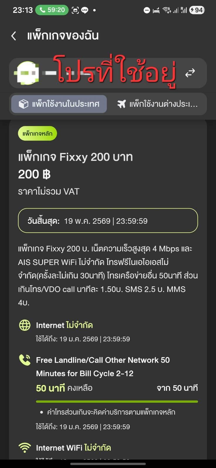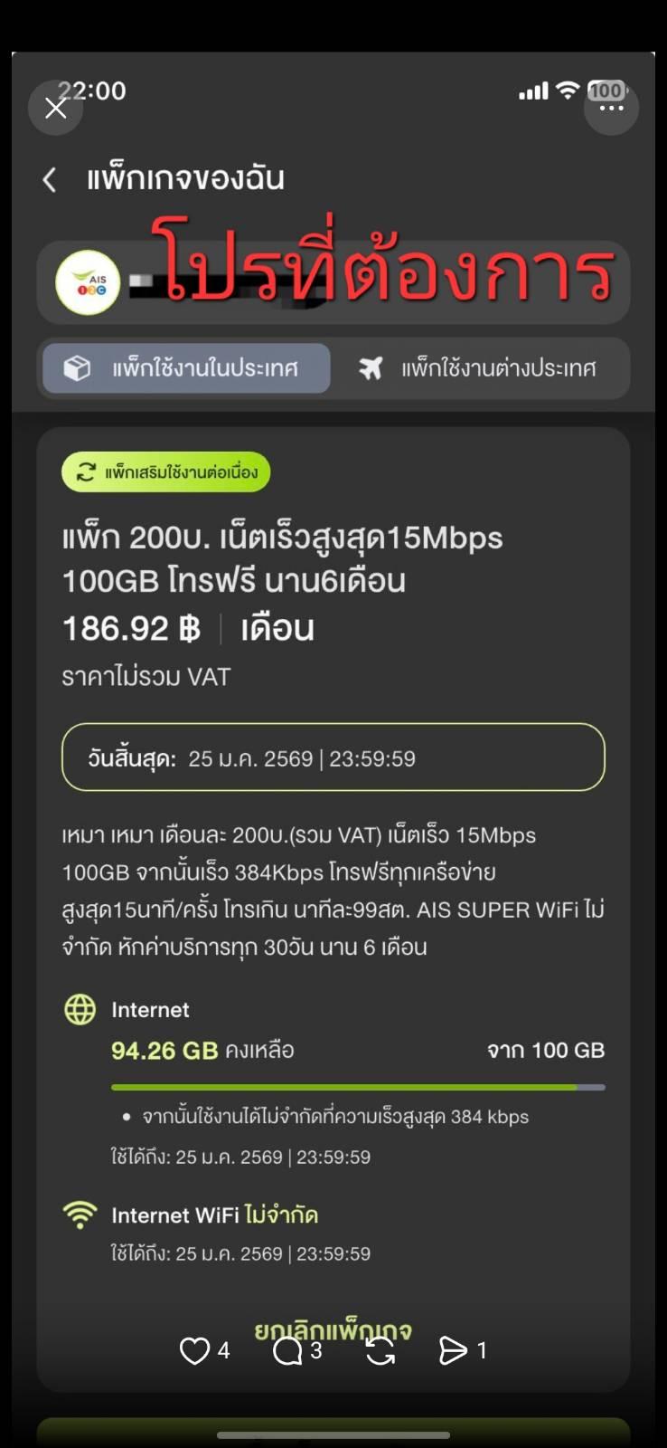 ขอสอบถามพี่ๆ เกี่ยวกับโปรเน็ต ais.รายเดือนครับ ผมใช้อยู่ตอนนี้โปรโมชั่น fixxy ครับเดือนละ 200นิดๆ แต่ความเร็วเน็ต 4mbps ไม่จำกัด ตามรูป แต่ที่บ้านมีไวไฟอยู่เลยใช้เน็ตแค่เดือนละ ไม่ถึง 30 GB