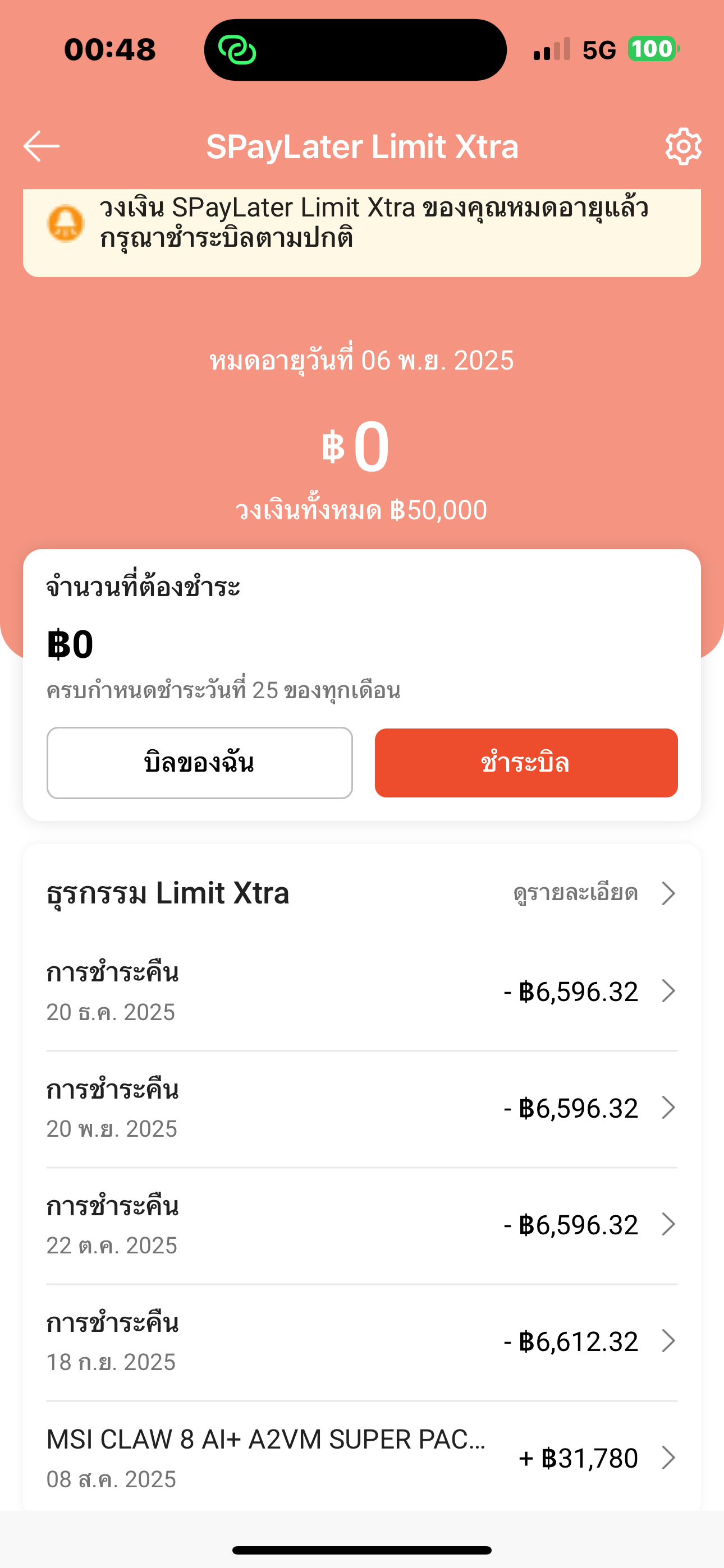 อยากลองใช้ วงเงิน Spaylater Limit Xtra เพราะเห็นว่า วงเงินใกล้หมดอายุ เลยลองกดสั่งไป แต่พอกดจ่ายเงิน ก็ขึ้นว่าชำระเงินไม่ได้ ทั้งๆ ที่วงเงินตรงนี้ไม่ได้ใช้อะไรเลย และเราก็ไม่เคยค้าง ไม่เคยจ่ายช้า งงมา