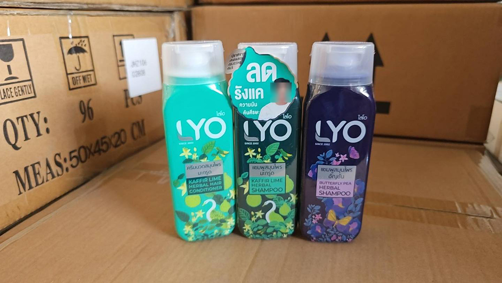 1. ผลิตภัณฑ์บำรุงเส้นผมดูและหนังศีรษะ ยี่ห้อไลโอ ปลอม จำนวน 25,892 ขวด