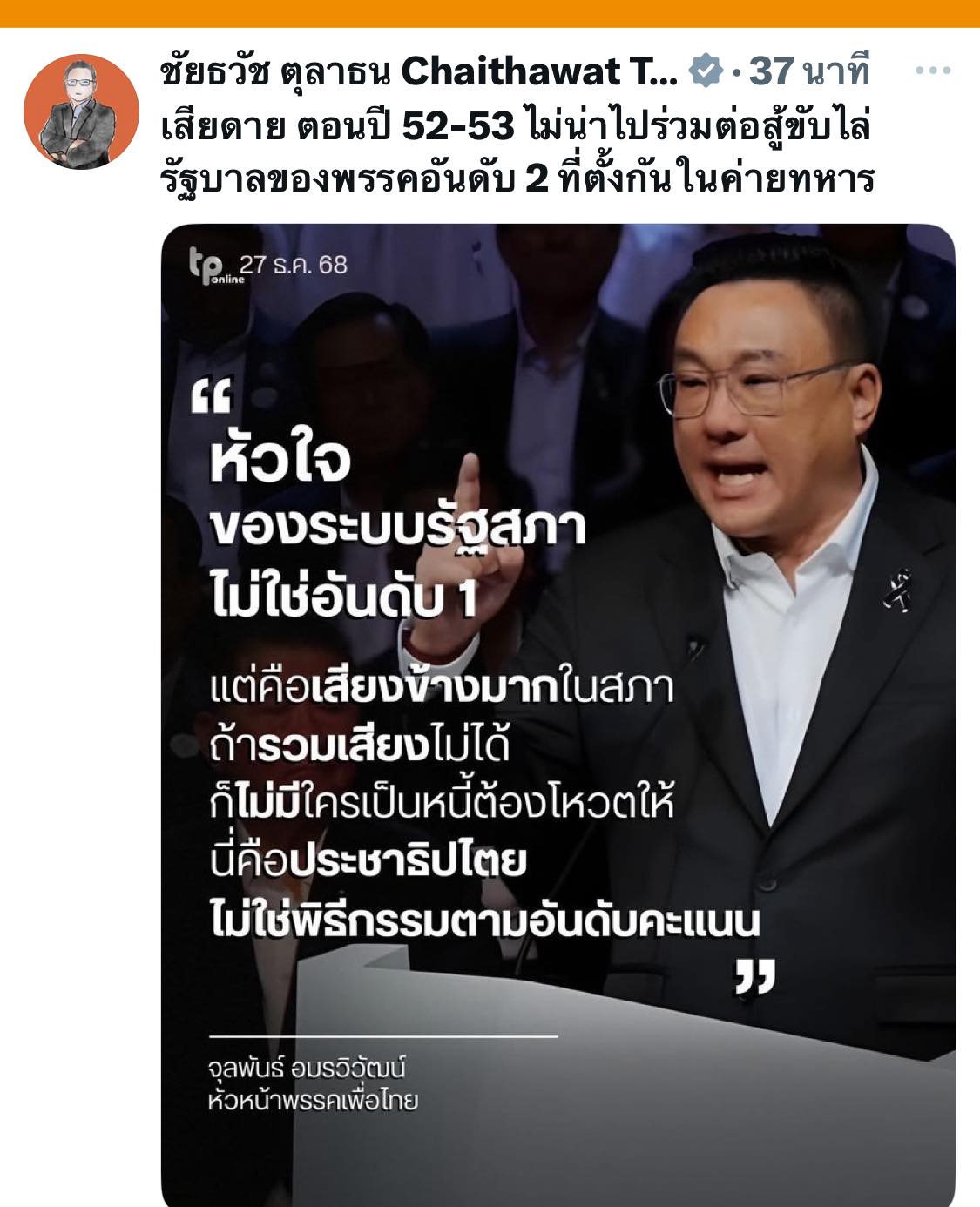 ชัยธวัช ตุลาธน พรรคประชาชน ไม่น่าไปร่วมยกมือโหวตให้พรรคลำดับสามเป็นนายกฯในสภาเลยครับ