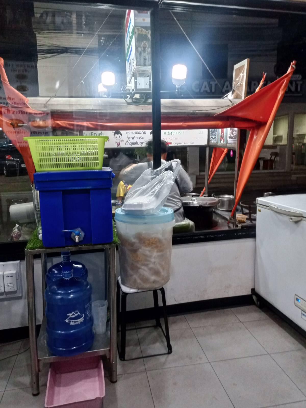 มองออกไปเฮียเจ้าของร้านกำลังผัดเมนูของผม กลิ่นหอมฟุ้ง