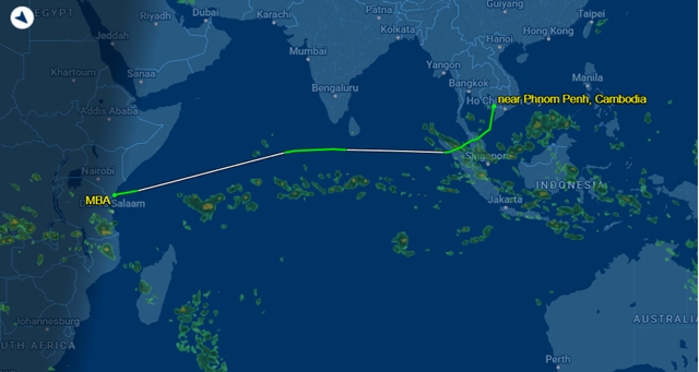 จากการเช็คเส้นทางการเดินทาง ออกมาจากเมือง Bombasa ประเทศ Kenya