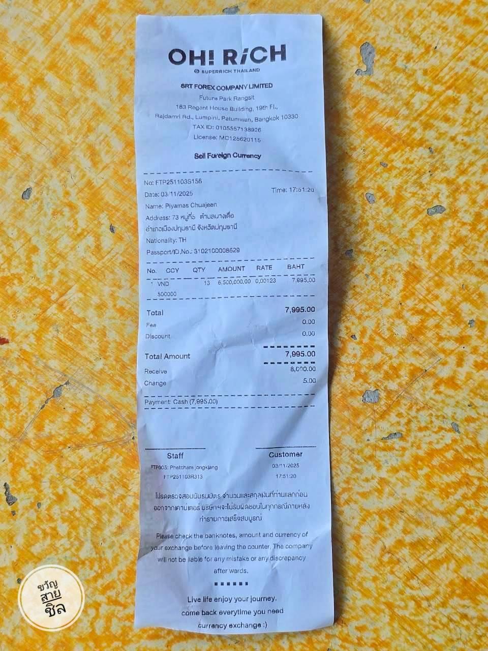 รอบนี้เราแลกเงิน VND จากร้านรับแลกเงิน OH!RiCH ในไทยไปเลย