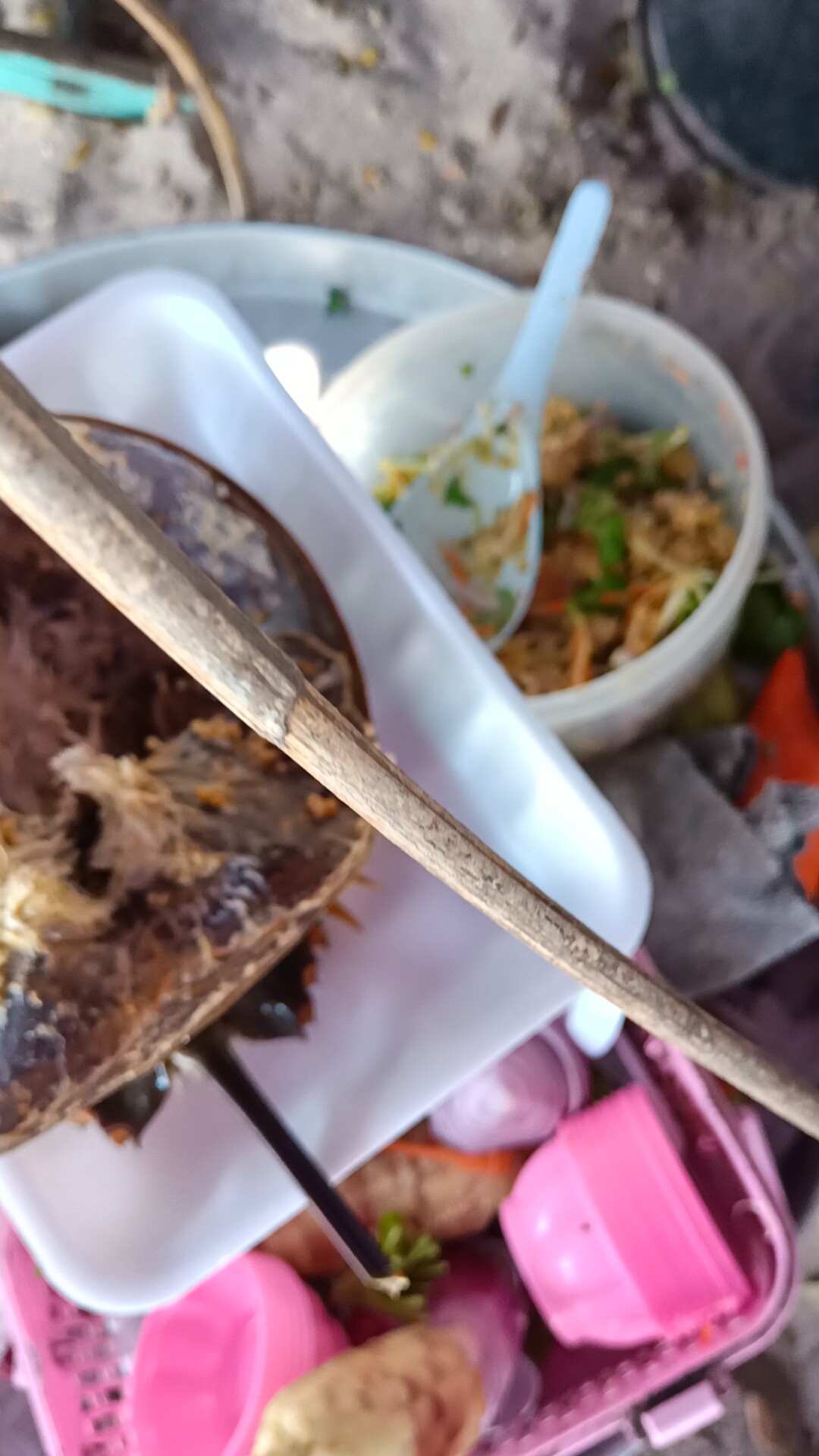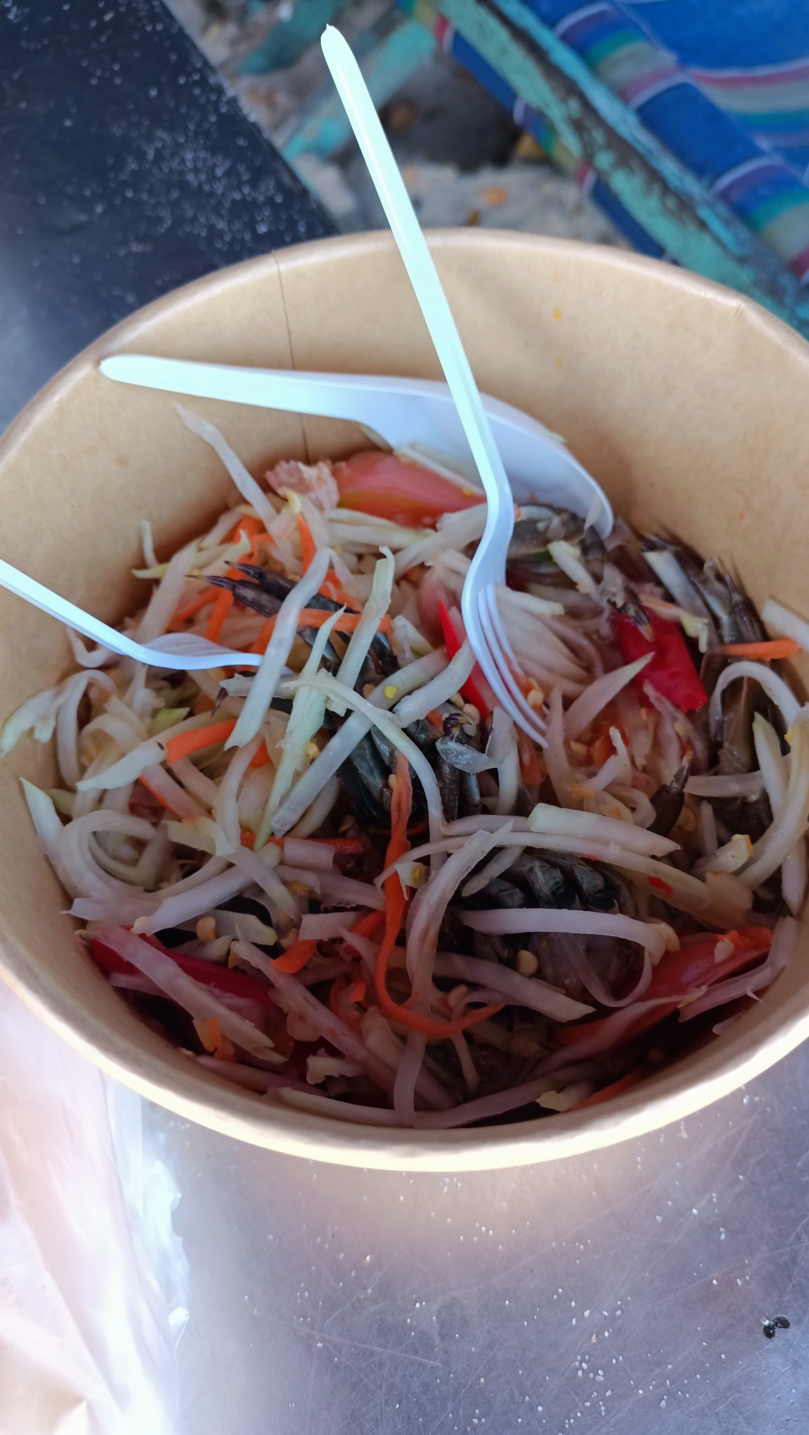 อร่อยดีครับ รสชาติมันๆ จะมีพี่หาบมาขายแบบนี้ ผมเพิ่งรู้ว่าแมงดาทะเลมีเส้นเมาด้วยนะครับ แม่ค้าเค้าจะเอาออกตอนแกะไข่ แล้วถ้าเราไปซื้อมายำเองเป็นตัวๆเค้าจะเอาออกให้รึยังนะ ผม