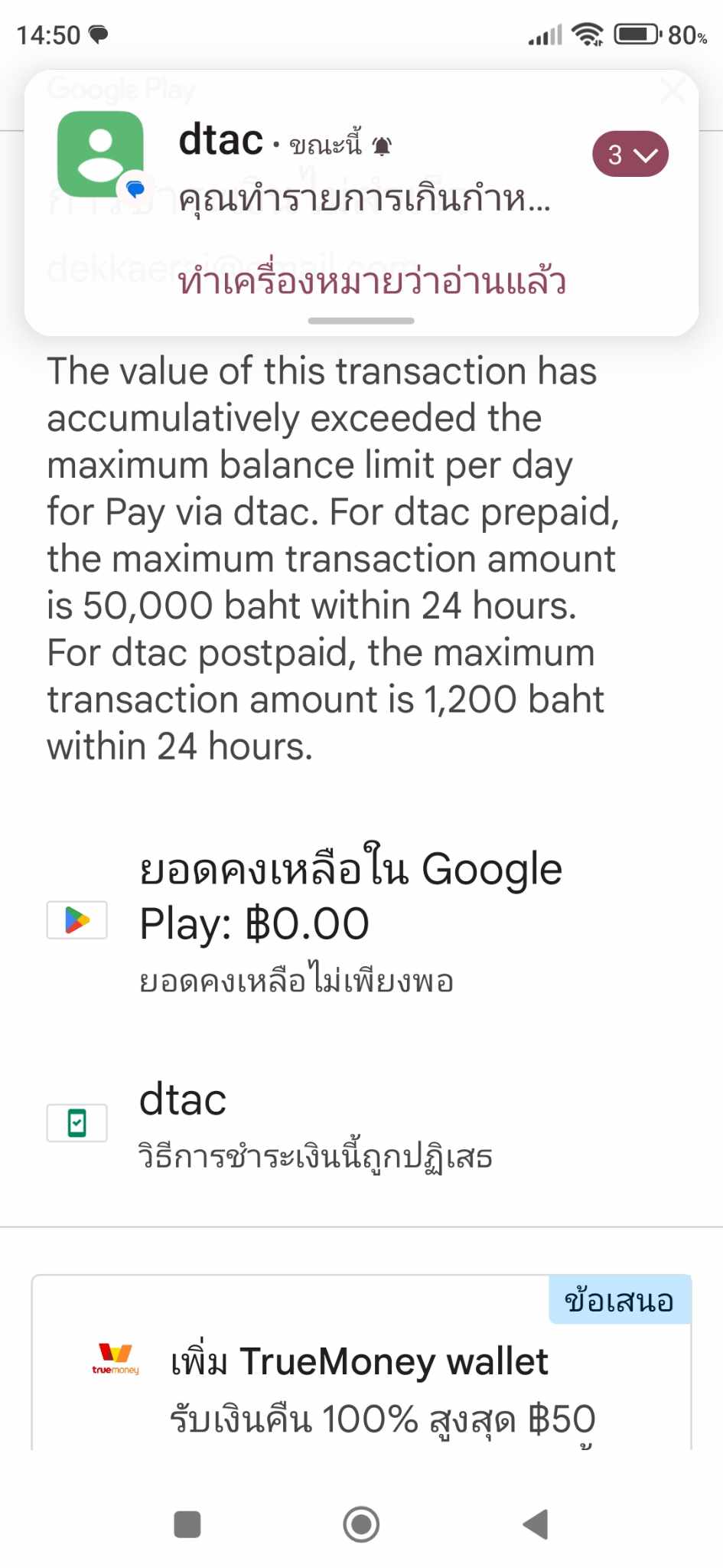 เติมเงินเกม ผ่านดีแทค เติมเงินไม่ได้