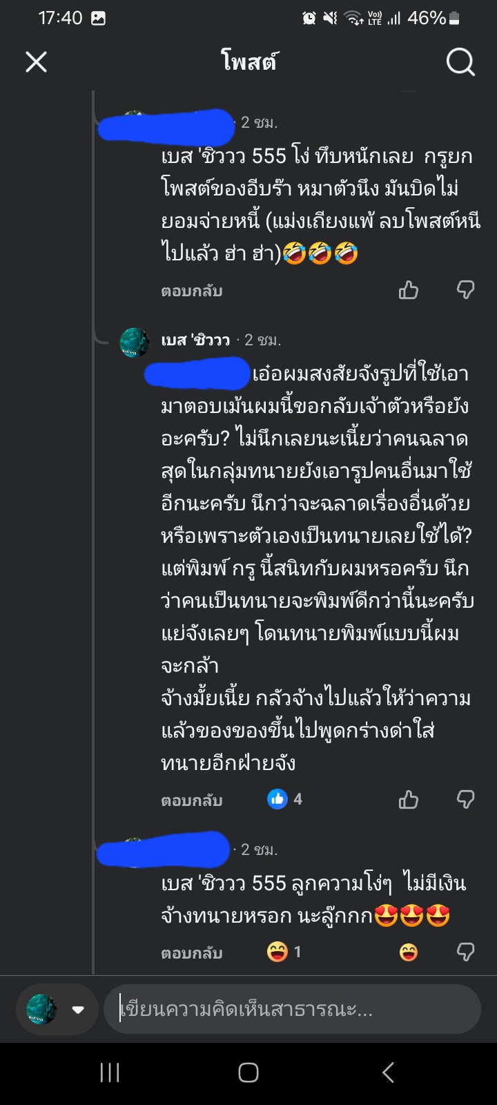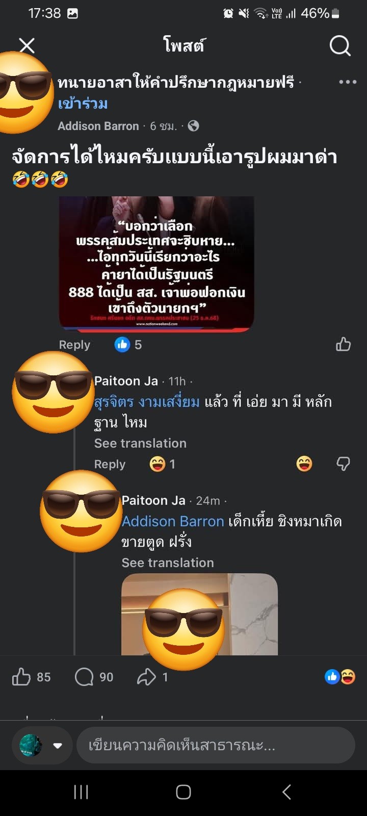 สอบถามหน่อยครัย พอดีผมเข้าไปเม้นในกลุ่ม ทนายอาสาให้คำปรึกษาฟรี แล้วเจอทนายในกลุ่มนิสัยเสียตอบเม้นไม่เหมือนทนายเลย