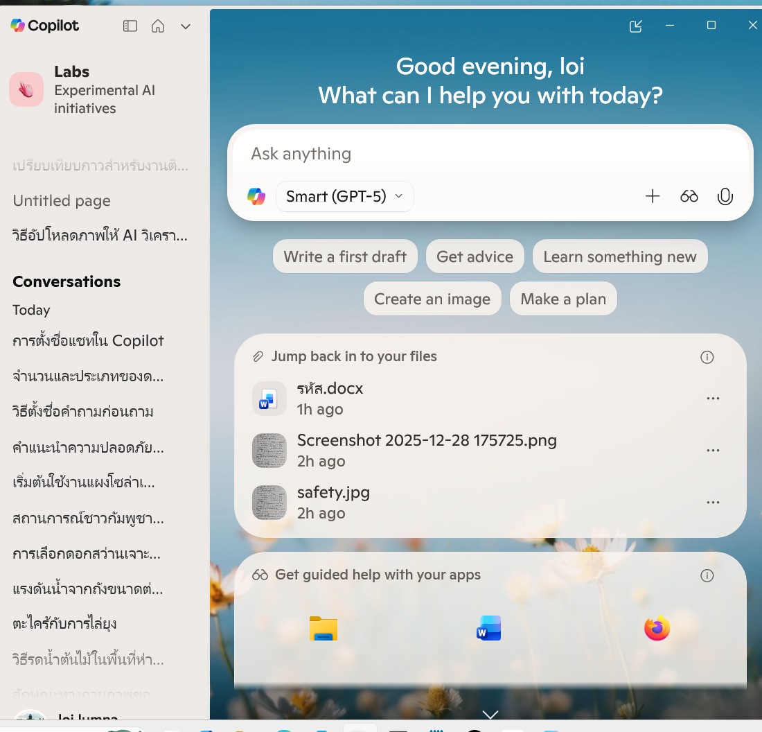 Copilot แสดงหัวข้อคำถาม(แบบสรุป)ทางซ้ายมือ แต่ขึ้นมาไม่ครบ ประเด็นคือ