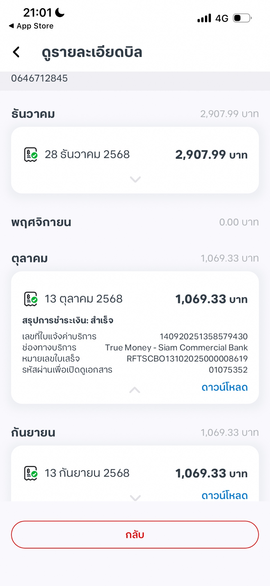 จ่ายบิลทรูไปแล้วเดือนตุลาแต่ไม่ตัดยอดให้ ทำให้ทบยอดมาเรื่อยๆ ทำให้ที่จะต้องจ่ายเยอะเกิน เพราะว่าทบจากเดือนตุลา
