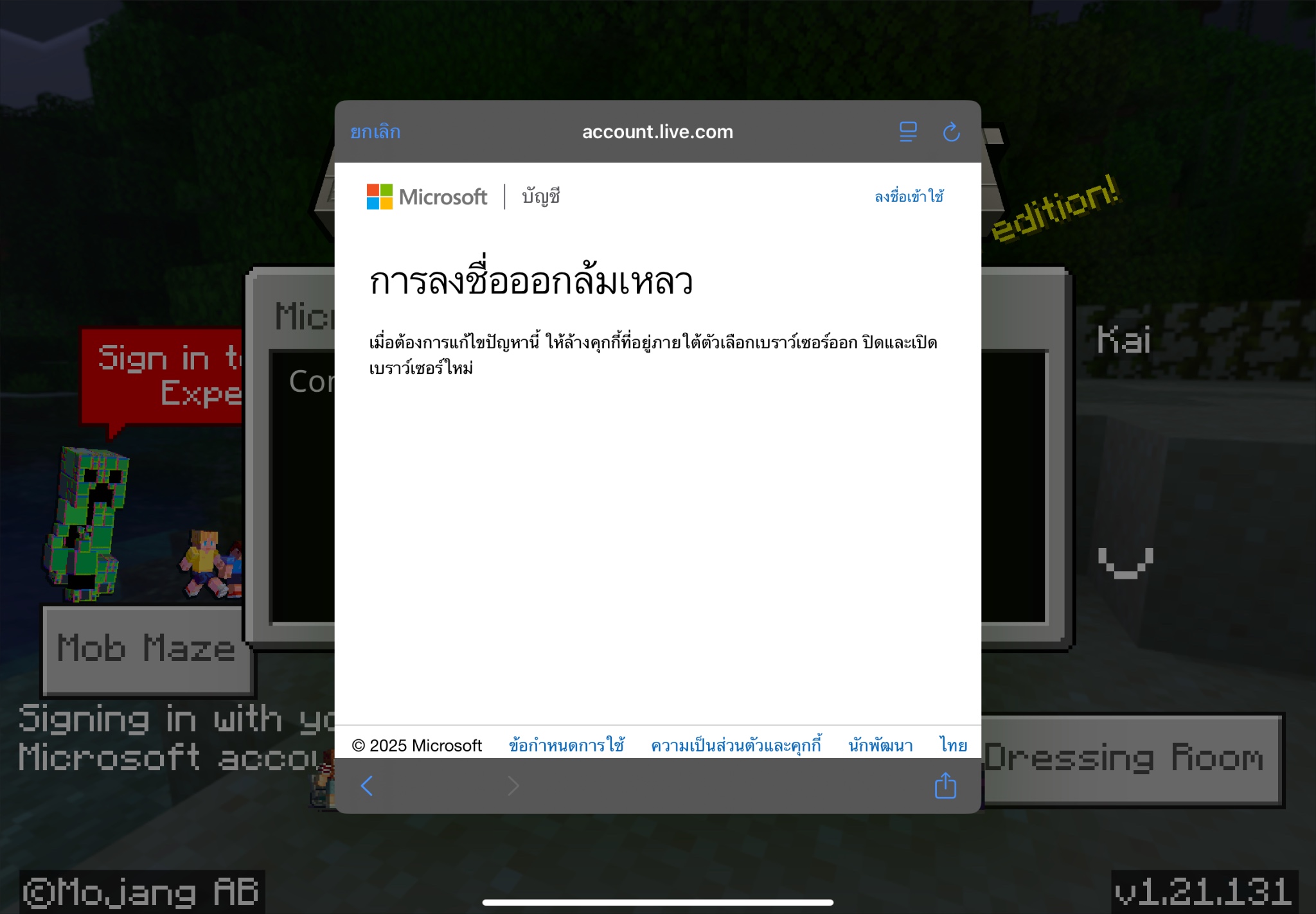 ล็อกอินมายคราฟไม่ได้ค่ะ