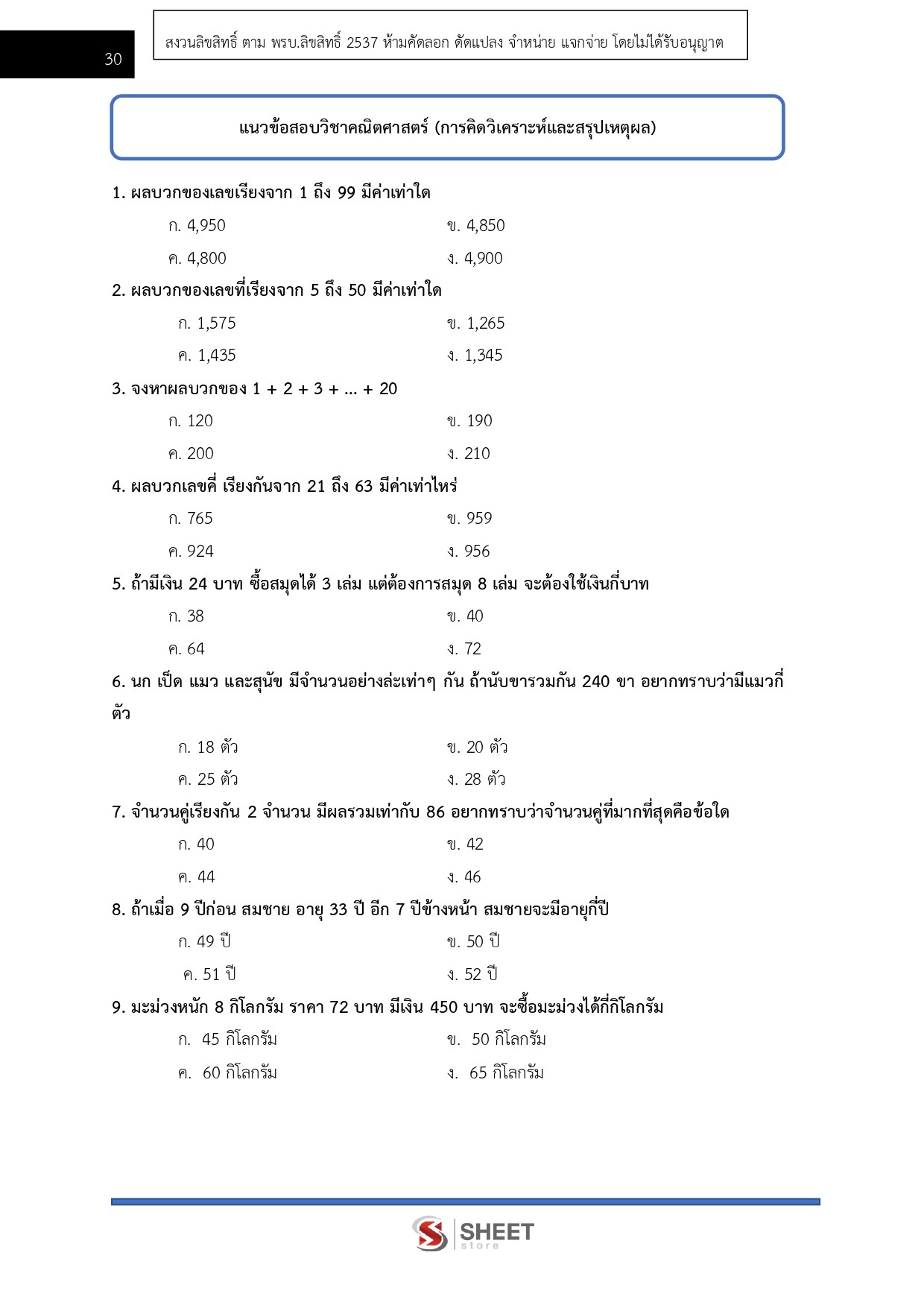 - แนวข้อสอบวิชาคณิตศาสตร์ วิเคราะห์และสรุปเหตุผล