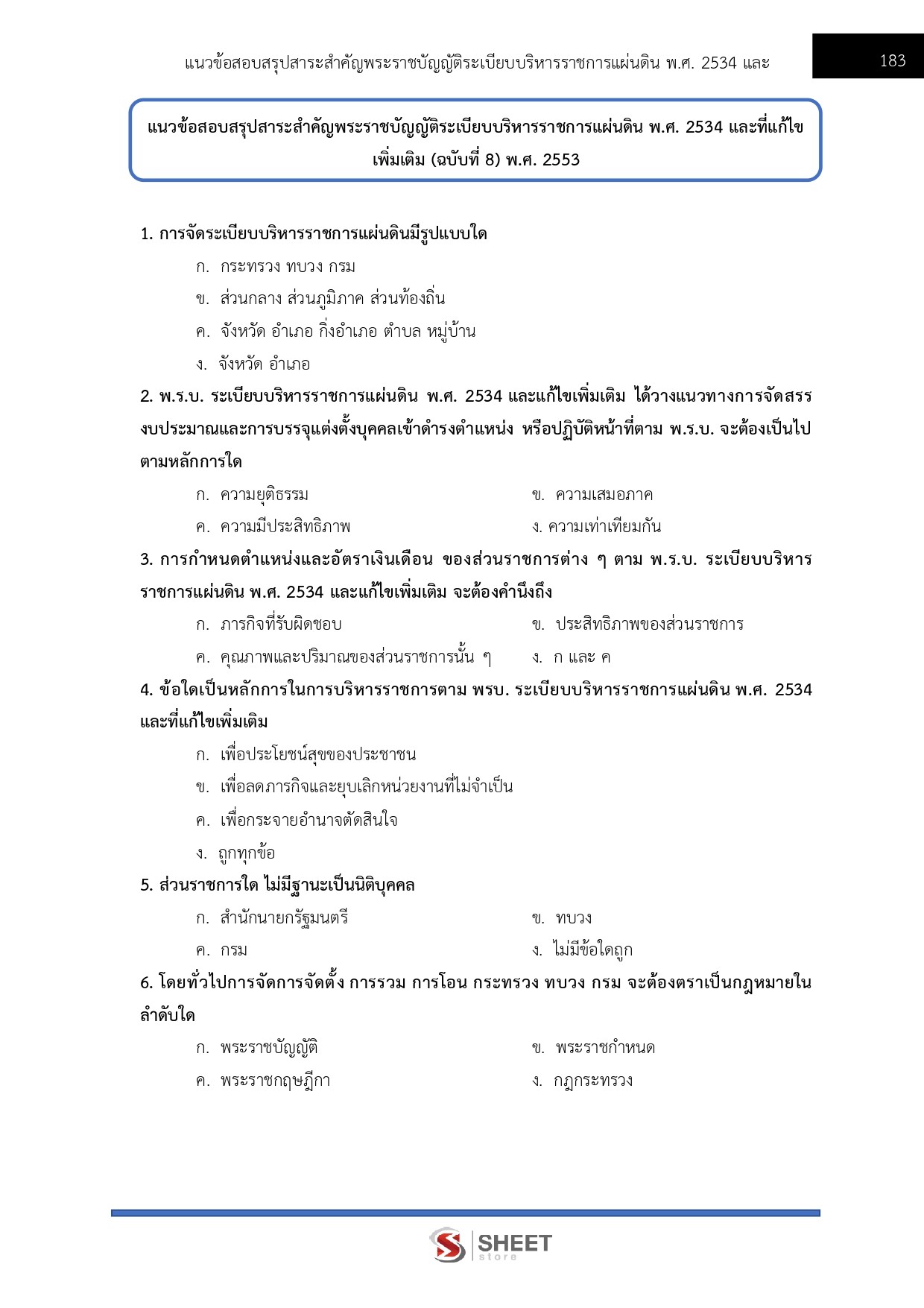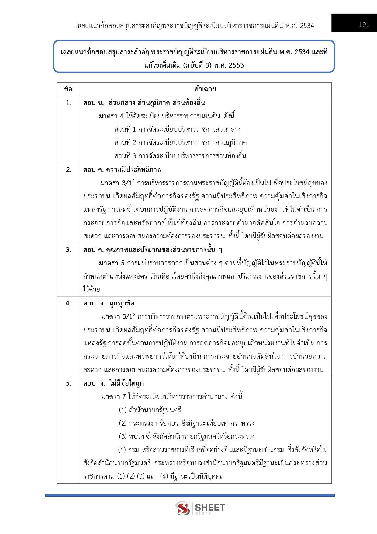- แนวข้อสอบพระราชบัญญัติระเบียบบริหารราชการแผ่นดิน พ.ศ. 2534 และที่แก้ไขเพิ่มเติม (ฉบับที่ 8) พ.ศ. 2553