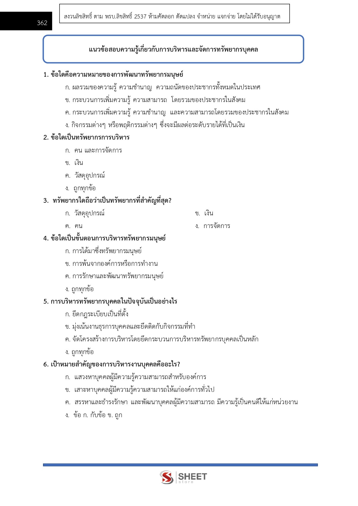 - แนวข้อสอบความรู้เกี่ยวกับการบริหารทรัพยากรบุคคล