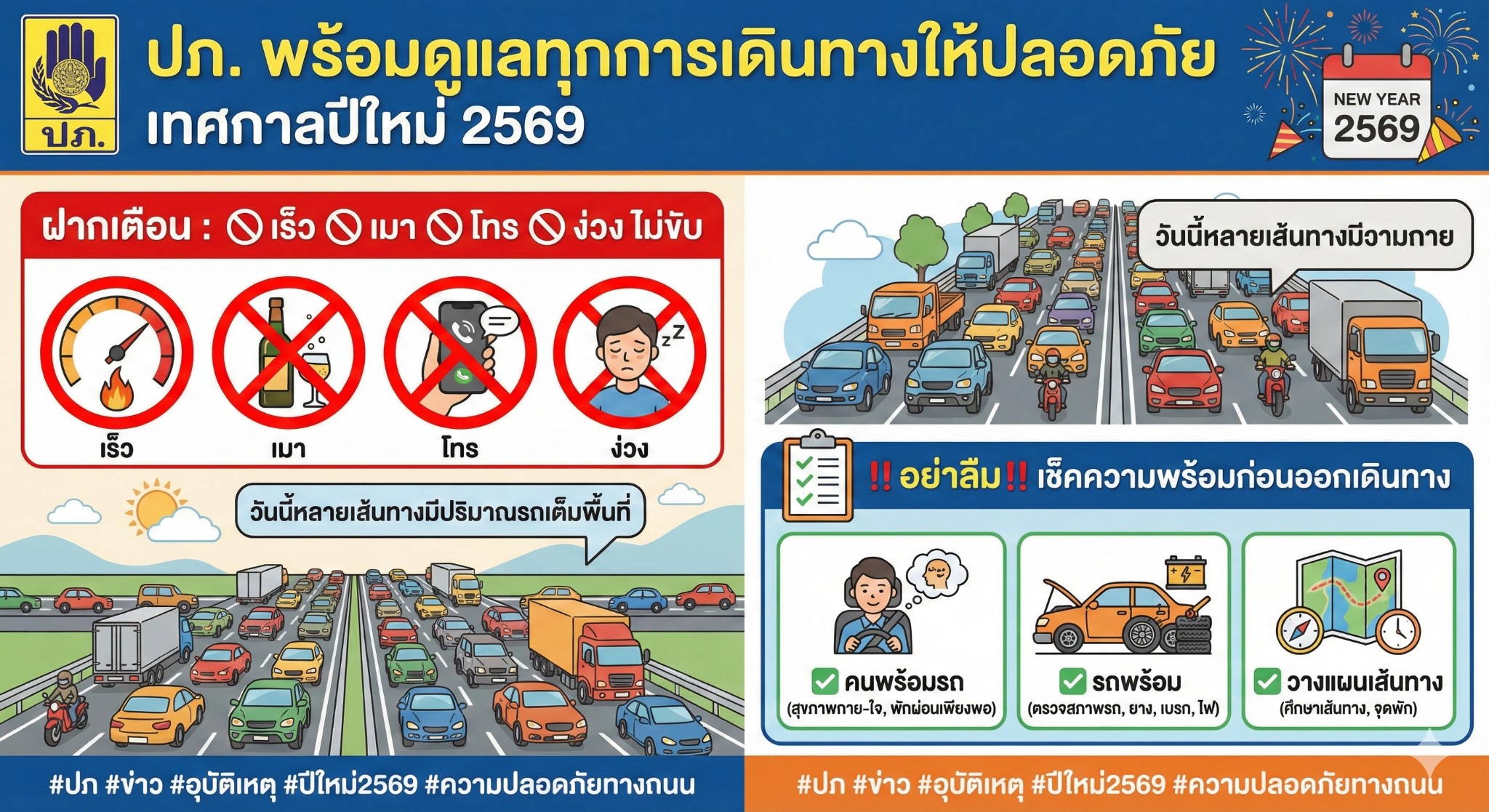ปภ.พร้อมดูแลทุกการเดินทางให้ปลอดภัยในช่วงวันหยุดยาวเทศกาลปีใหม่ 2569