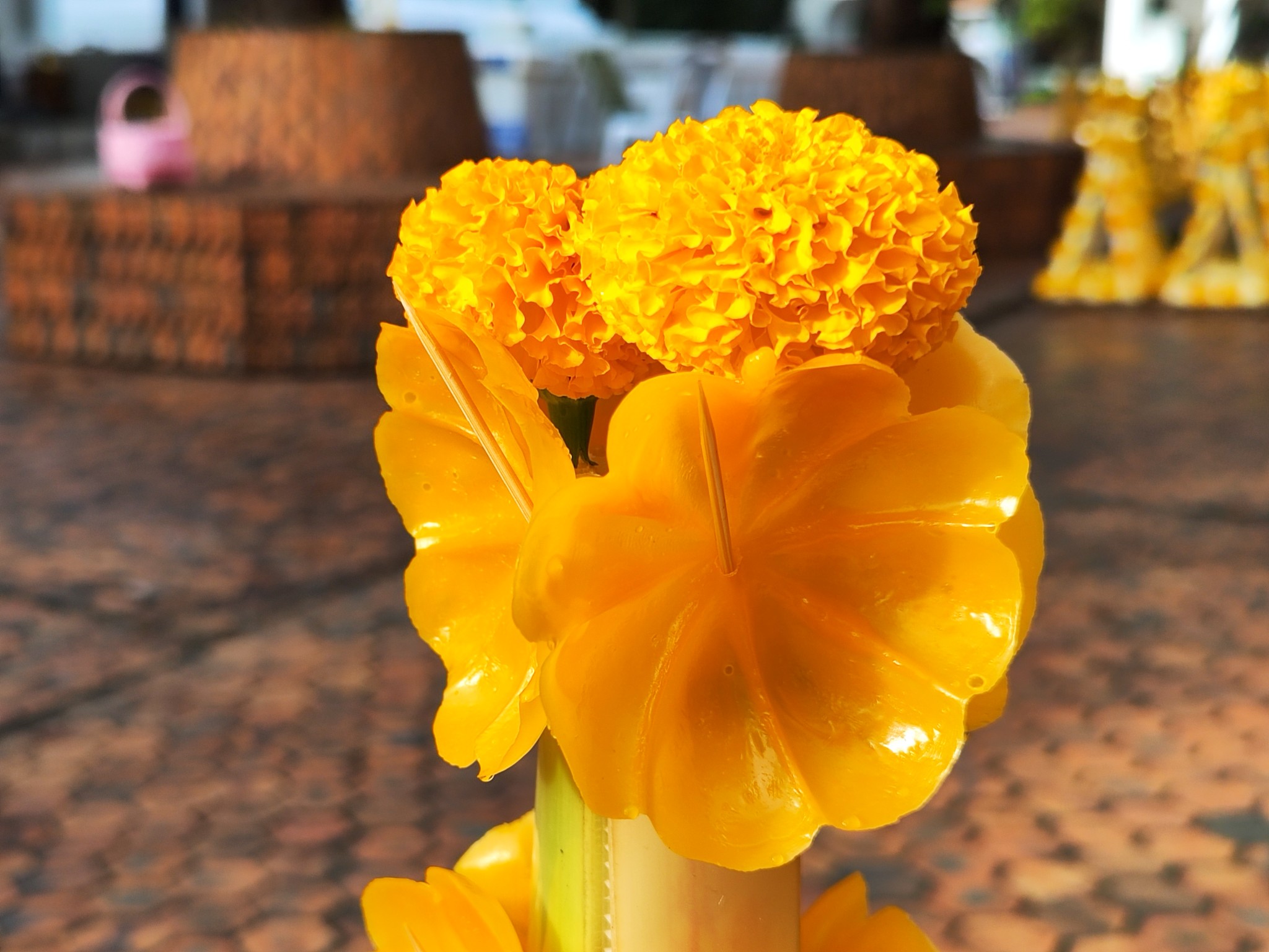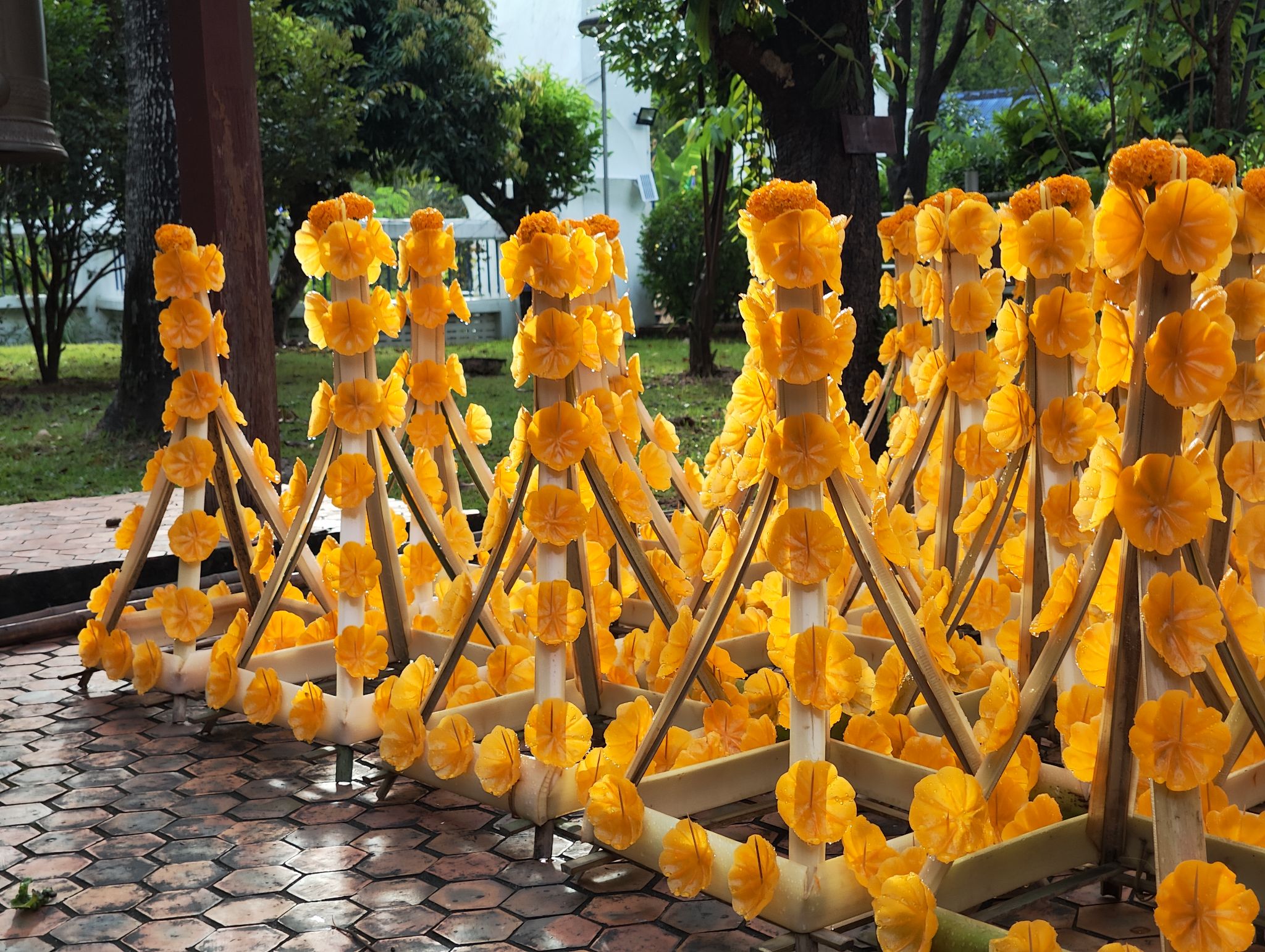 ถ้าสังเกตดีๆ จะเห็นว่าต้นผึ้งแต่ละกลุ่มมีความแตกต่างกันอยู่นะคะ ซึ่งของเราก็จะเป็นแบบภาพด้านล่างนี้ คือยอดต้นผึ้งจะใช้ดอกดาวเรืองเป็นหลัก และดอกผึ้งก็จะสวยประณีต และโครงต้นผึ้งก็สมมาตรและมีขนาดเท่ากันหมด