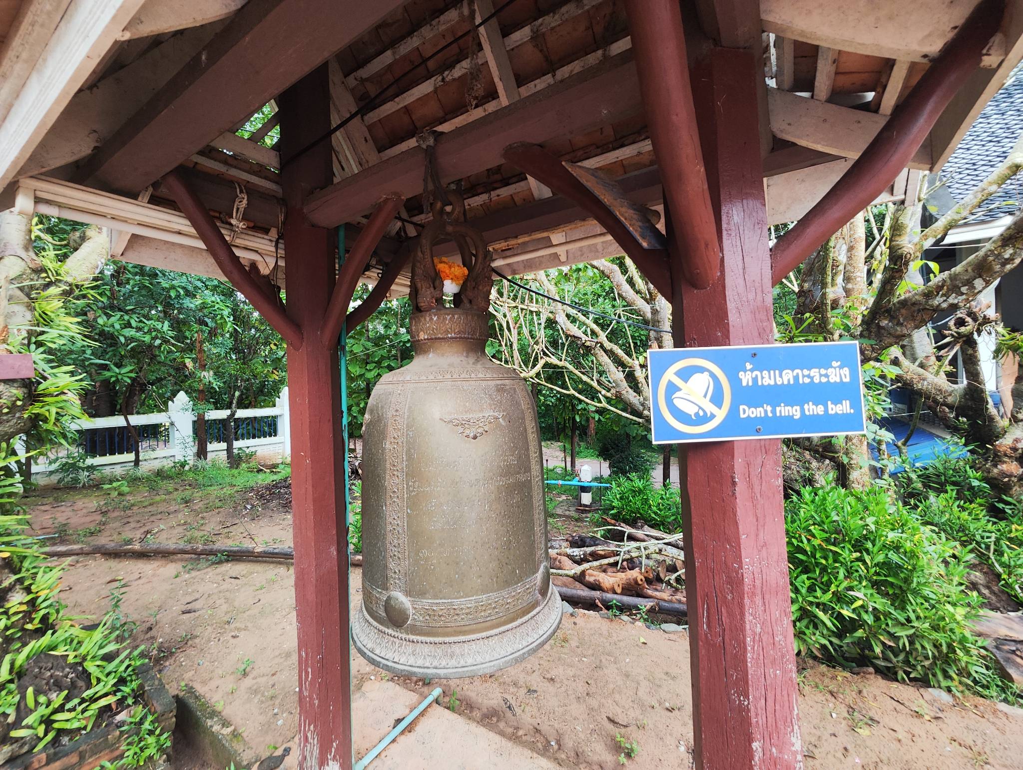 เหมือนว่าเมื่อก่อนจะเคาะได้นะทุกคน แต่คนเคาะเยอะเกินไป ก็เลยติดป้ายใหม่เพื่อความสงบของส่วนรวม แต่กระซิบนิดนึงว่าถึงจะไม่เคาะก็ขอพรได้ และปังมากจริงๆ ยิ่งถ้าทำครบสูตร คือ ถวายต้นผึ้ง เดินวนรอบองค์พระธาตุ แล้วจบด้วยการลูบระฆัง ยิ่งสมหวังกับสิ่งที่ของ่ายขึ้น ย้ำว่าอันนี้ประสบการณ์ตรงส่วนตัวนะเพื่อนๆ