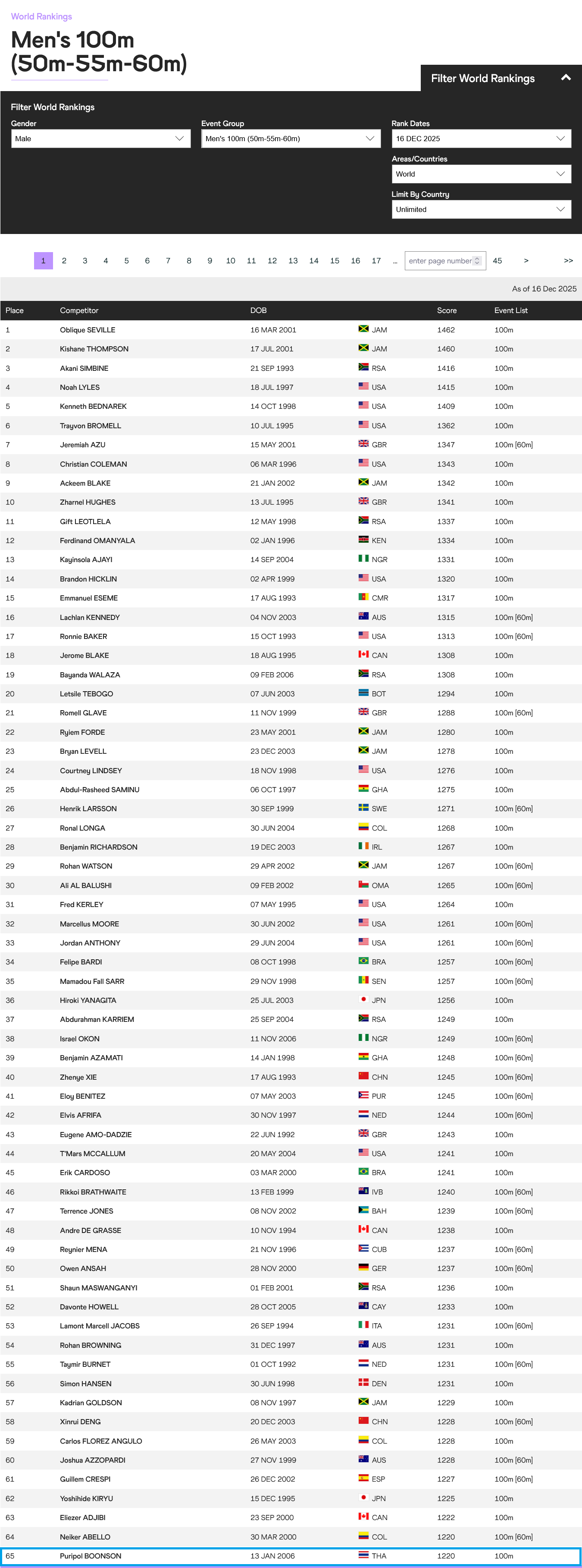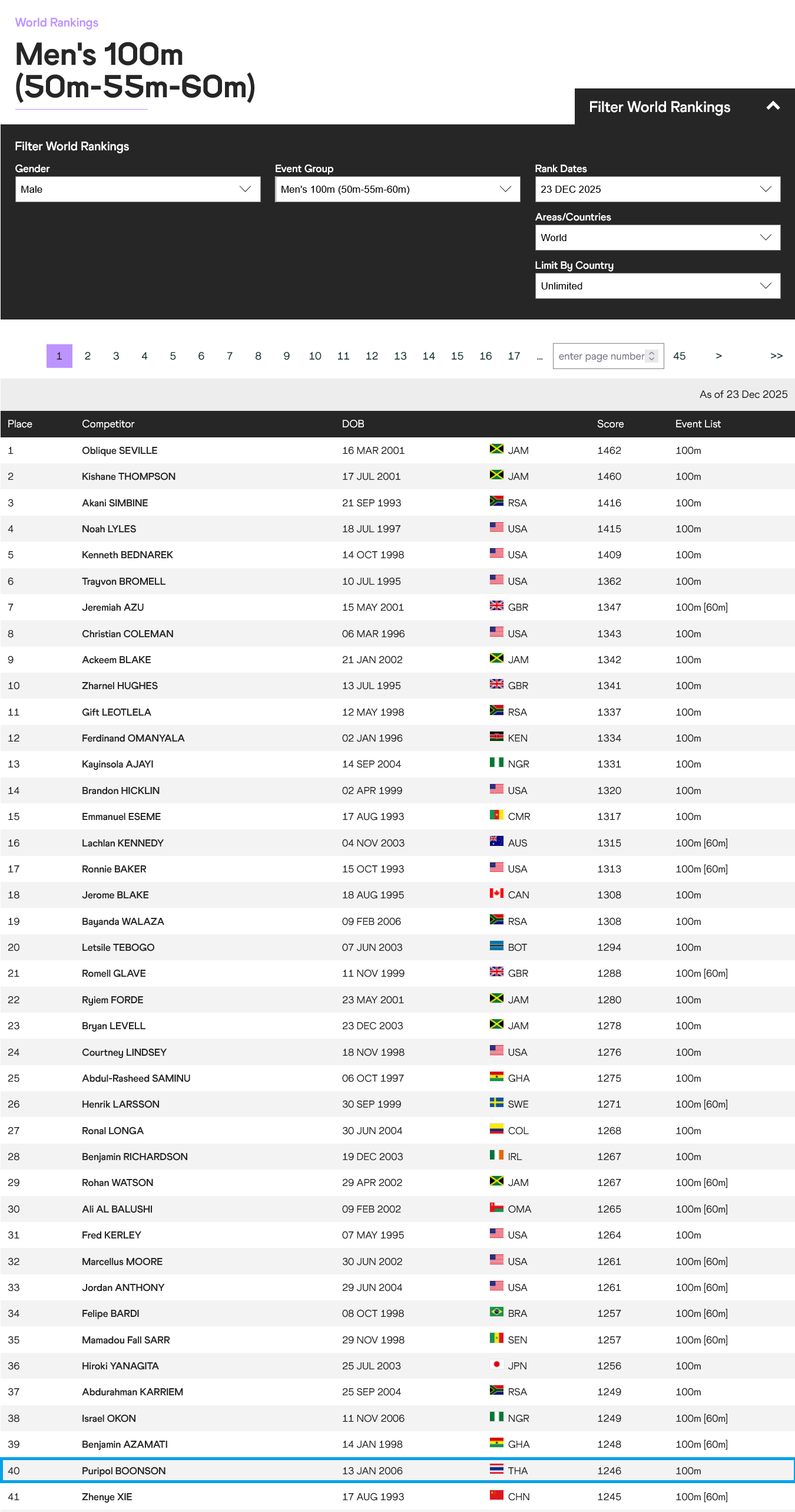 ที่มา: https://worldathletics.org/world-rankings/100m/men?regionType=world&page=1&rankDate=2025-12-23&limitByCountry=0