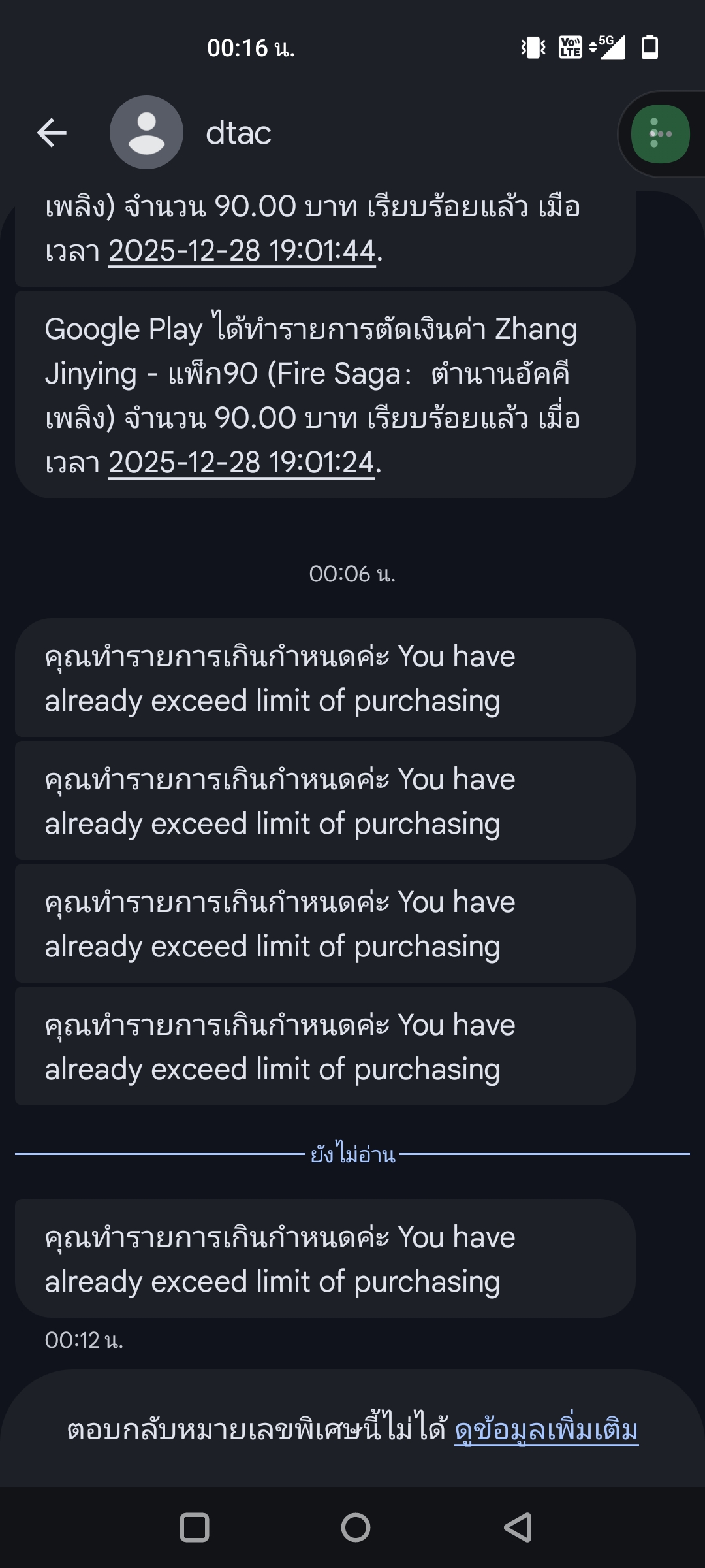 เบอร์ถูกระงับเนื่แงจากเปิดวงเงินไม่ได้ Dtac