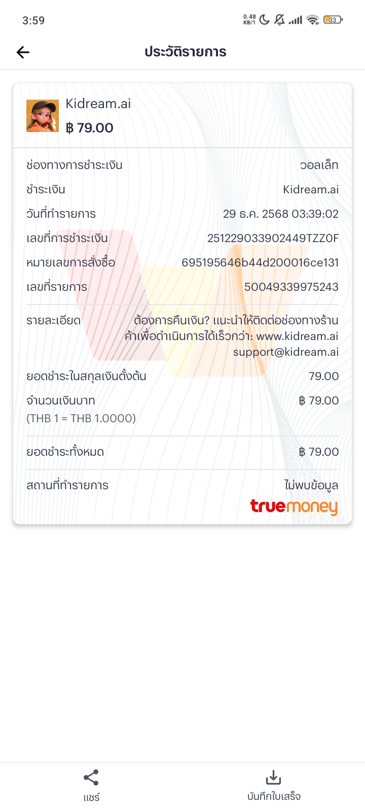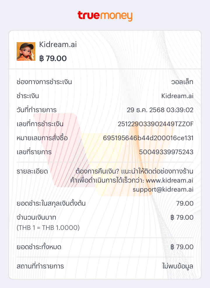 ตอนนี้โดนหักเงินจากทูรมันนี่ไปบาทหมายเลขคำสั่งซื้อ