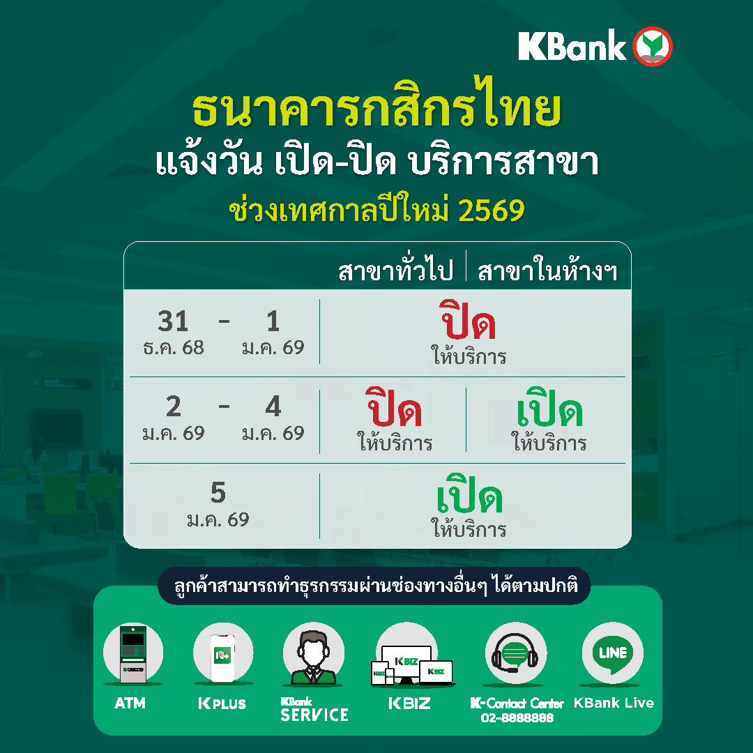 ปีใหม่ 2569 เช็กวันเปิด-ปิดทำการสาขาธนาคาร หยุดวันไหนบ้าง...