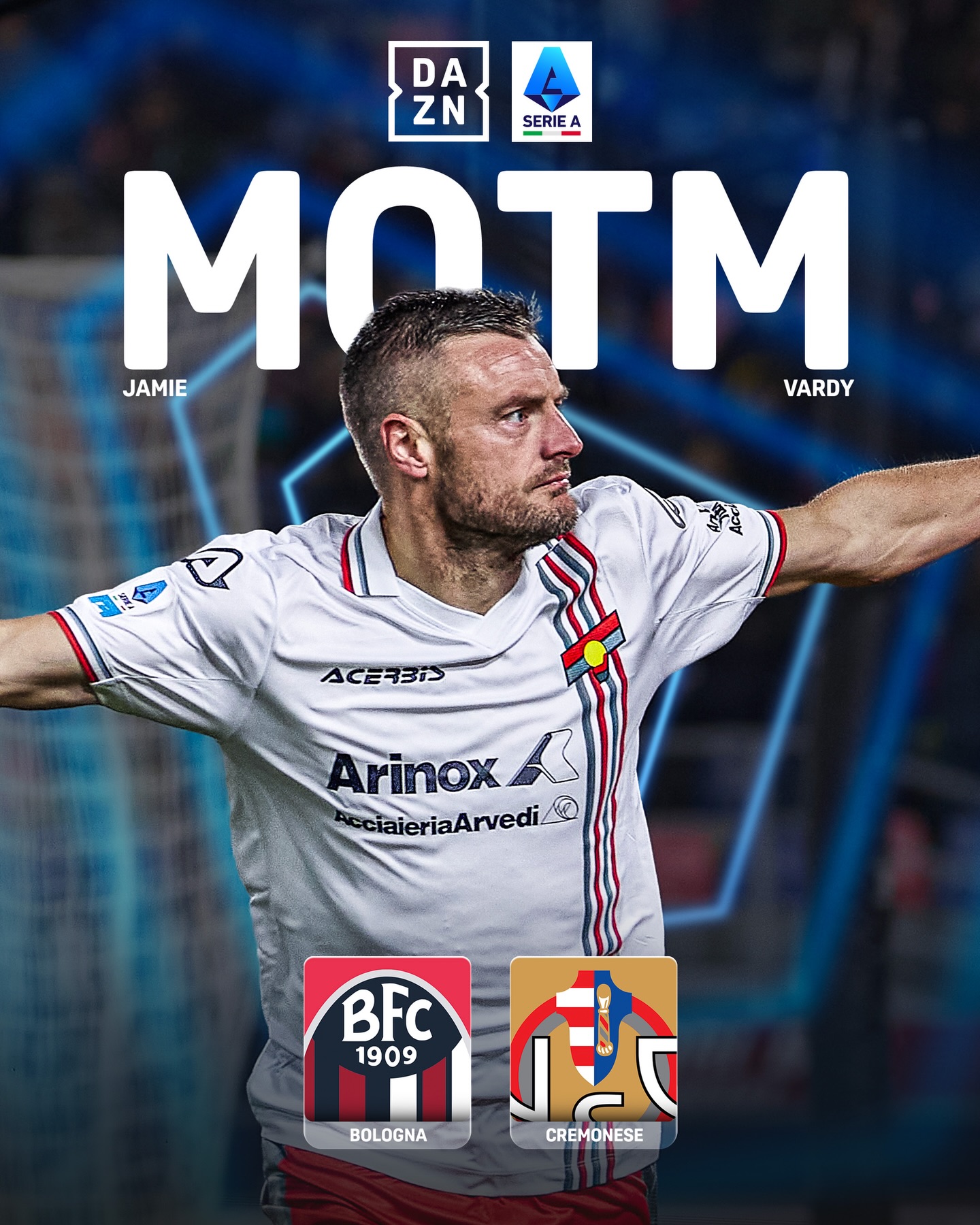 เจมี่ วาร์ดี้ ในวัย 38 ปี !! นักเตะยอดเยี่ยมประจำเดือนของกัลโช่ เซเรีย อา จากผลงาน 3 ประตูใน 1 เดือนให้ เครโมเนนเซ่ พร้อมช่วยให้ เครโมเนเช่ หนีจากโซนตกชั้นมาอยู่อันดับ 9 ของตาราง