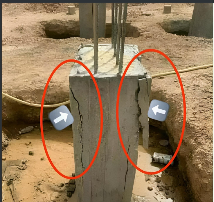 เทปูนทำเสา แล้ว พบว่า เสาร้าวแบบในภาพ สาเหตุมาจากอะไร และ ในทางก่อสร้าง ควรแก้ไขอย่างไร ครับ