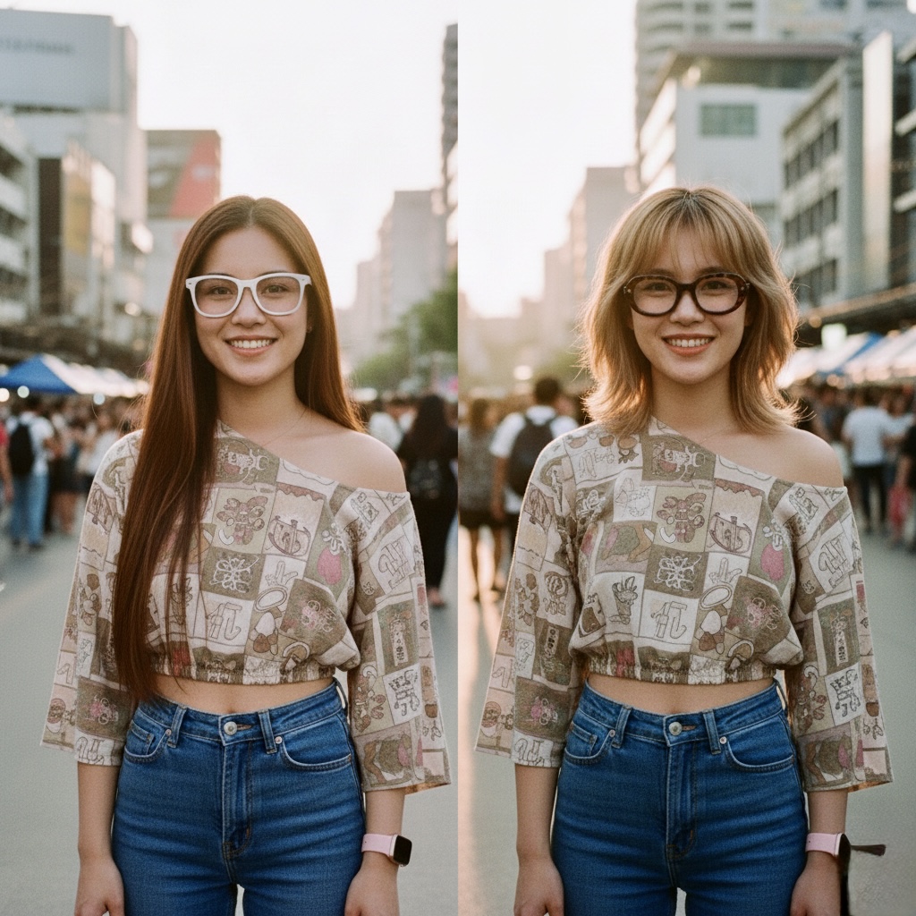 พอดีลูกสาว อายุ 16 ย่าง 17 ไว้ผมยาวมาตลอด 5-6 ปี จนยาวถึงสะโพก อยากเปลี่ยนแนว (เพราะกลับมาบ้านช่วงปิดเทอมแล้วจะกลับไปเรียนไฮสคูลต่อสัปดาห์หน้า) ตัดผมจนเหลือนิดเดียว เปลี่ยนกรอบแว่น