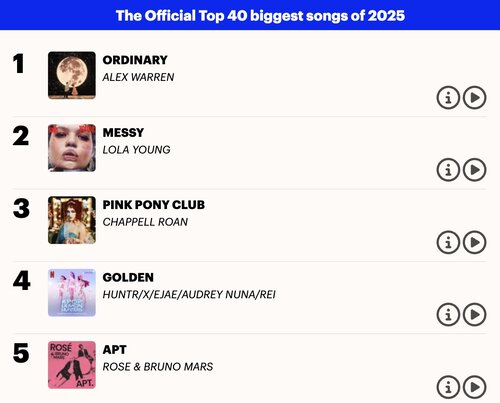 APT. จาก ROSÉ & Bruno Mars อยู่ TOP5 บนชาร์ตเพลงประจำปี 2025 ของสหราชอาณาจักร 🇬🇧
