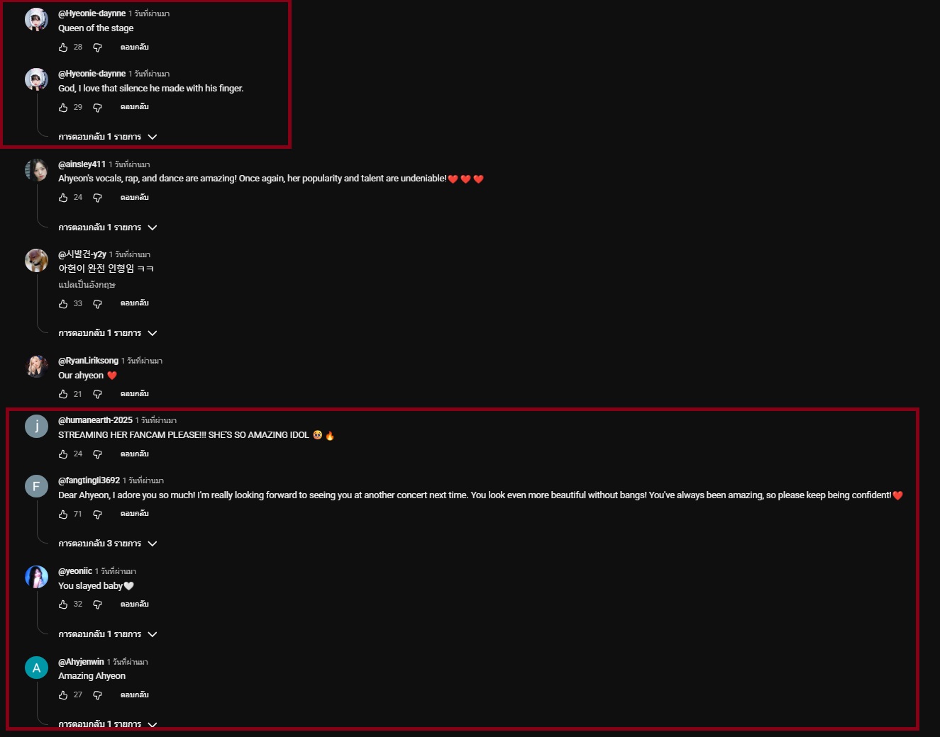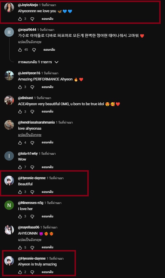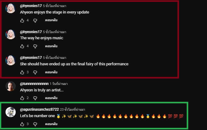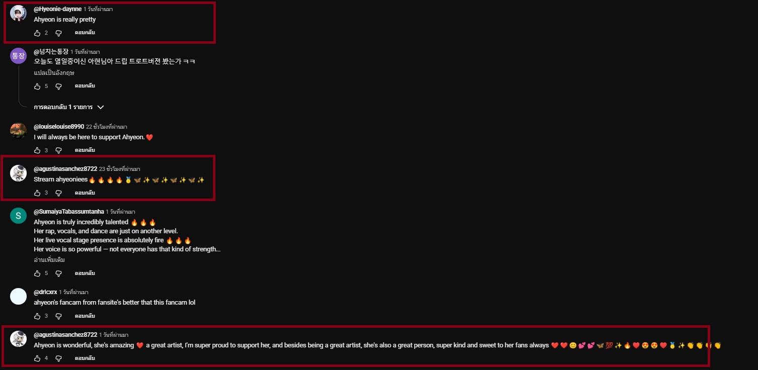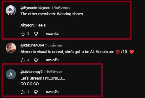 จุดที่น่าสังเกตคือ พอผ่านไปวันที่ 2 กราฟเริ่มเปลี่ยนซึ่ง ทางด้อมเขามีความสามัคคีกันและทำเป็นระบบมาก สังเกตได้จากยูสเซอร์เดิมๆ ที่เข้ามาคอมเมนต์ซ้ำๆ ทุกชั่วโมงด้วย Keyword เดียวกัน (เช่น Stream ahyeoniees, Keep streaming, Let's be number one) เพื่อดันยอดวิว ยอด Engagement