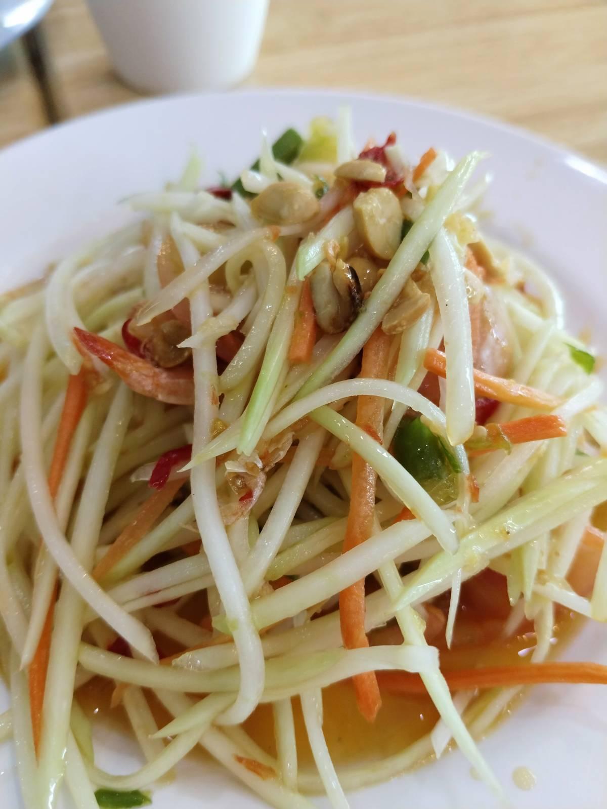 ก่อนหยุดยาว เพื่อนชวนมากินของแซ่บ ร้านนี้ผมยังไม่เคยมา เพื่อนตัวดีบอกว่าเห็นในติ๊กตอก มีเมนูเยอะเลย ตำเส้นเล็กปูปลาร้า สั่งแบบแซ่บสุดในร้าน ชอบจานนี้ที่สุดแล้ว เมนูร้านนี้ ตำหมูย่าง เข