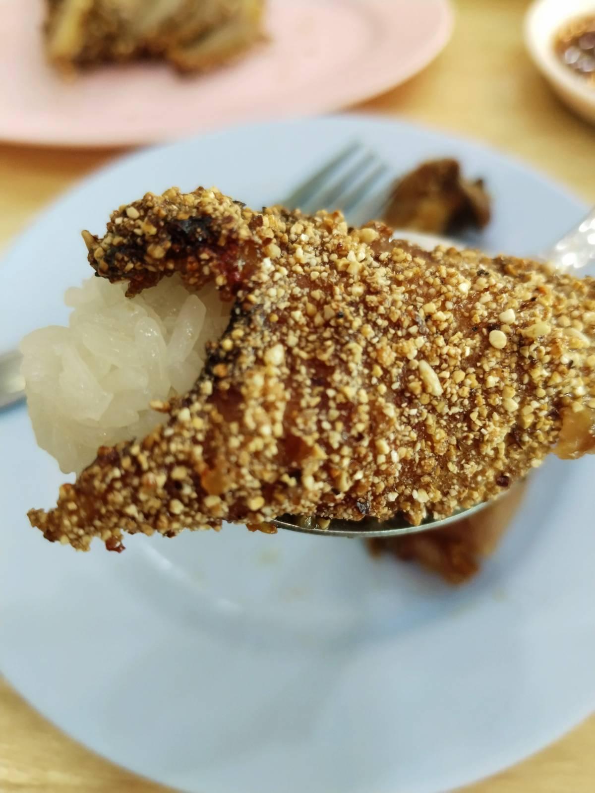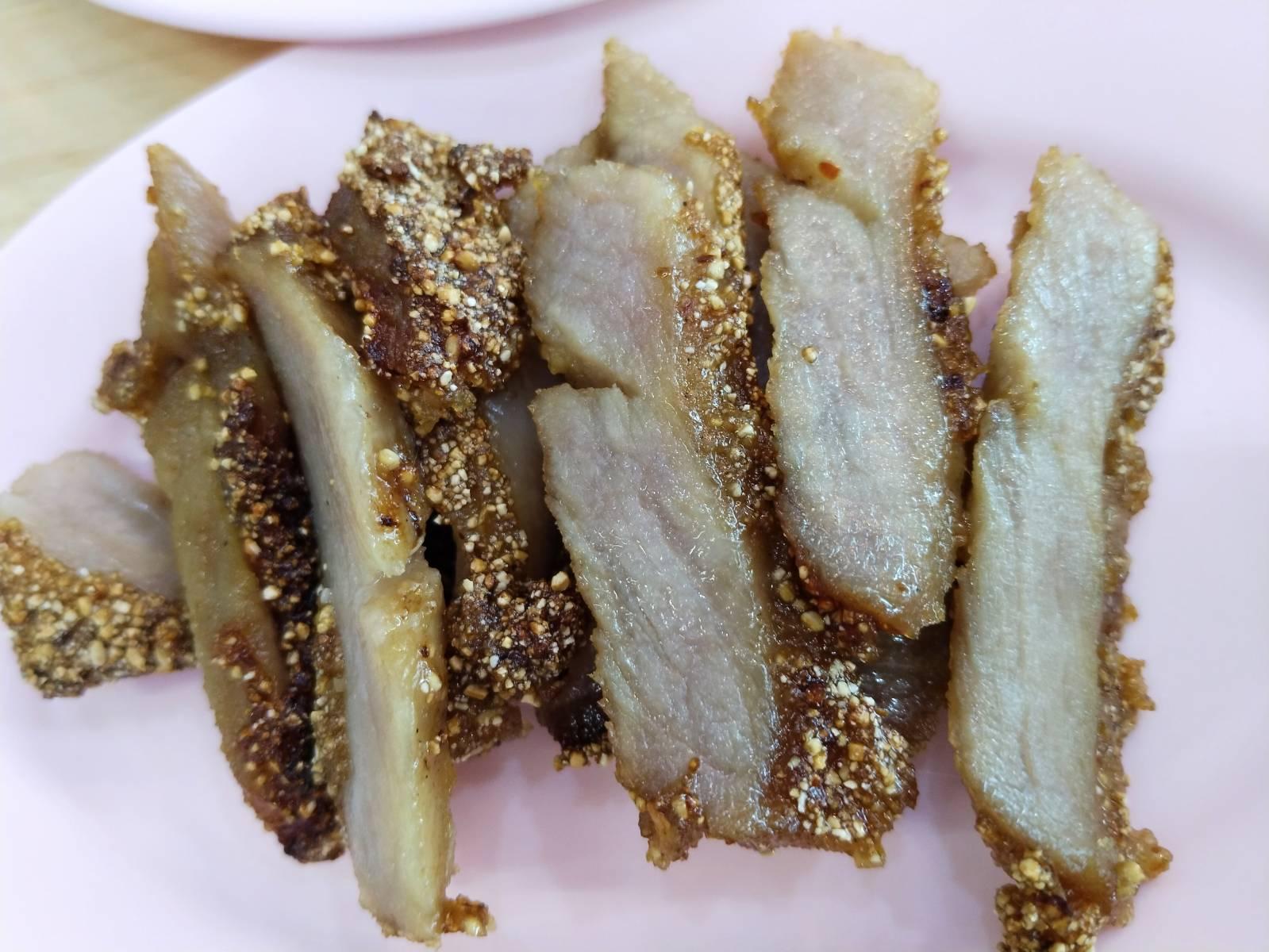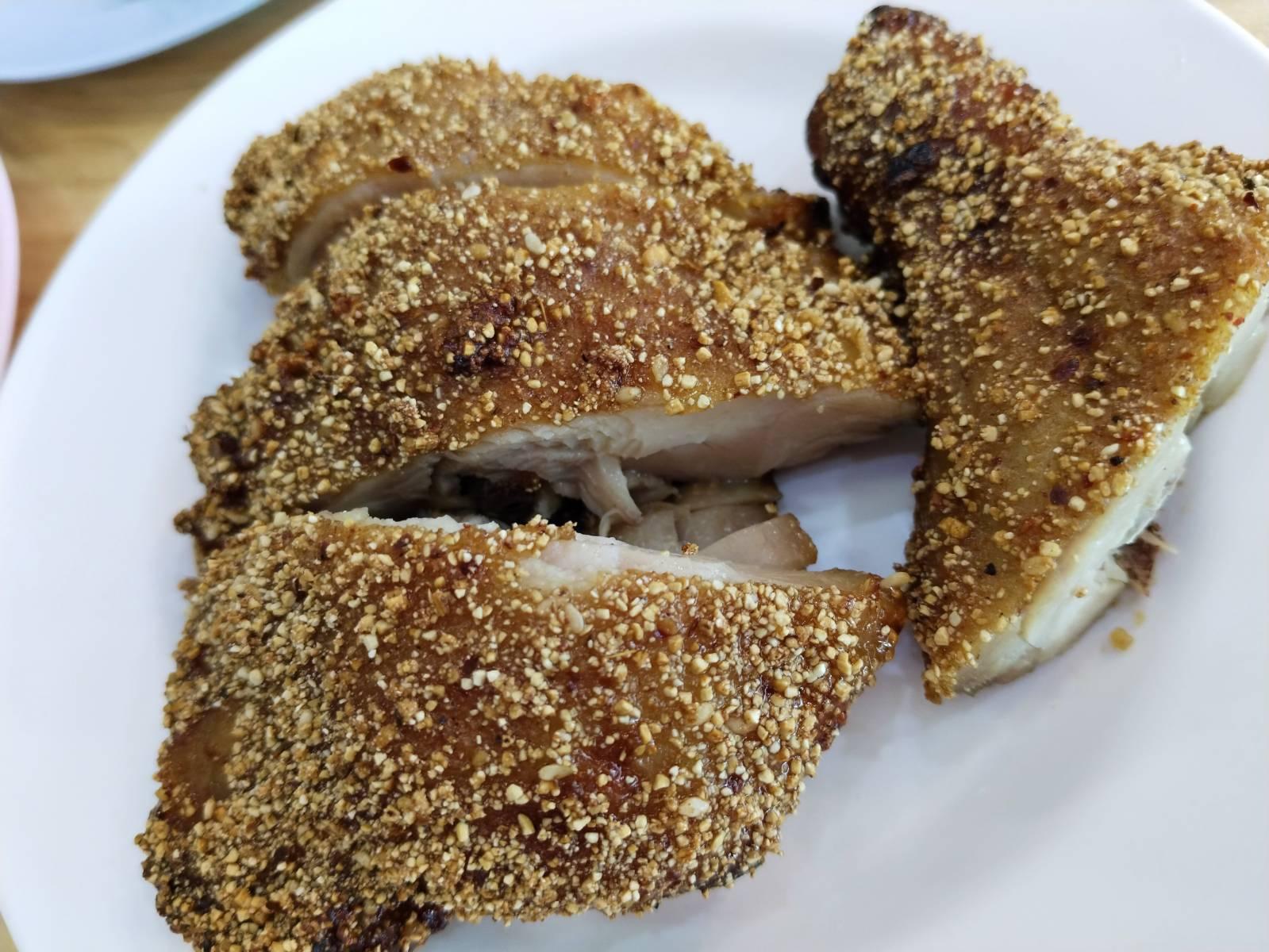 ของกินชลบุรี: คอหมูย่าง, ลาบเป็ด ร้านไก่อบโอ่ง(ลุงกด) เขาเขียว ร้านไปทางสวนสัตว์เขาเขียวชลบุรี ชอบกิน คอหมูย่าง (150฿) ชิ้นใหญ่ เคี้ยวนุ่ม รสดี น้ำจิ้มไก่ซอสมะขาม หรือ น้ำจิ้มแจ่ว ตามชอบ ชอบ