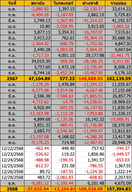Sinthorn Summary 29/12/2568 : ต่างชาติขายสุทธิ -608.82 ลบ.