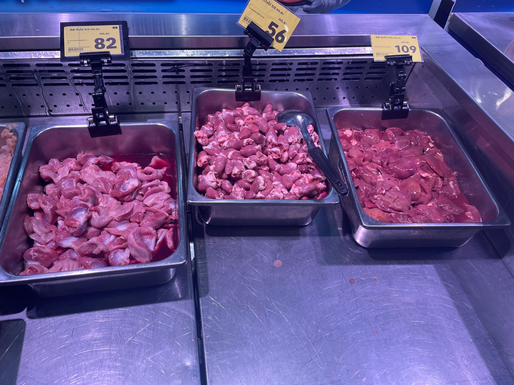 ประเด็นคือ เมื่อพนักงานดูว่าเป็นเนื้อสัตว์อะไร จะได้กดประเภทและชั่งได้ถูก (ผมดูผ่านๆน่าจะเป็นกึ๋นกับตับไก่ใส่รวมกัน แว่นผมก็ไม่ได้ใส่) พนักงานวางถุงและบอก 2 นางนั้นว่า