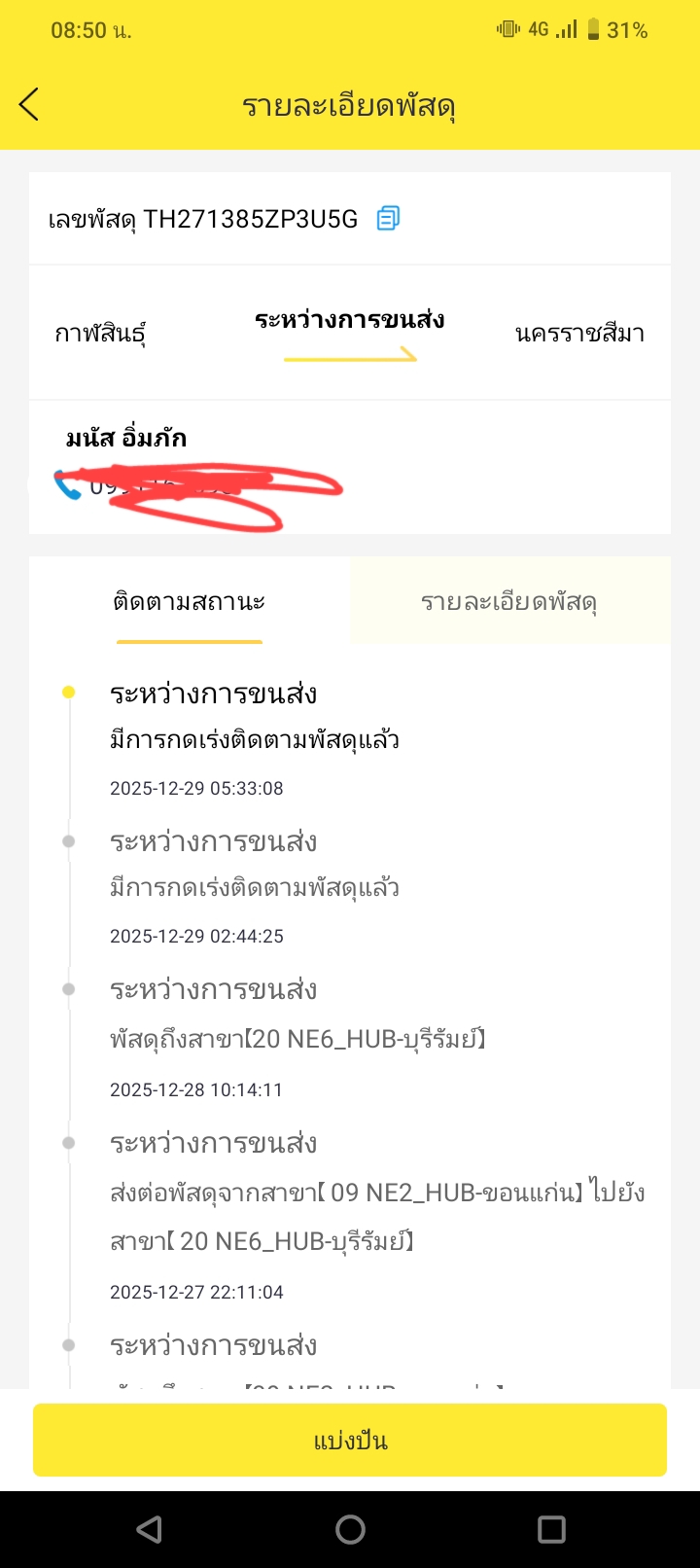 Flash สาขา 20 NE6_HUB-บุรีรัมย์ ไม่อัพเดทสถานะเลย ปกติจัดส่งเร็วกว่านี้ นี่เกิน24ชม.แล้ว