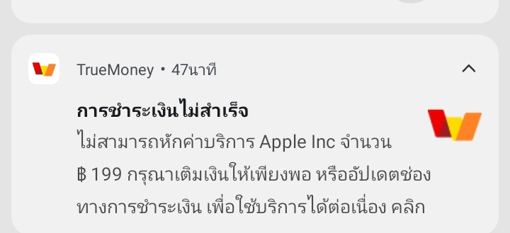 พอดีมีแจ้งเตือนจากแอพ true money ว่าค้างชำระค่า apple inc 299 บาท แต่ส่วนตัวยังไม่เคยสมาชิก และวันนี้ได้ติดต่อไปยังทางapple แล้วค่ะเขาบอกว่าได้กระทำการยกเลิกช่องทางการชำระเงินแล้ว อยากสอบถามทางทรูว่าย