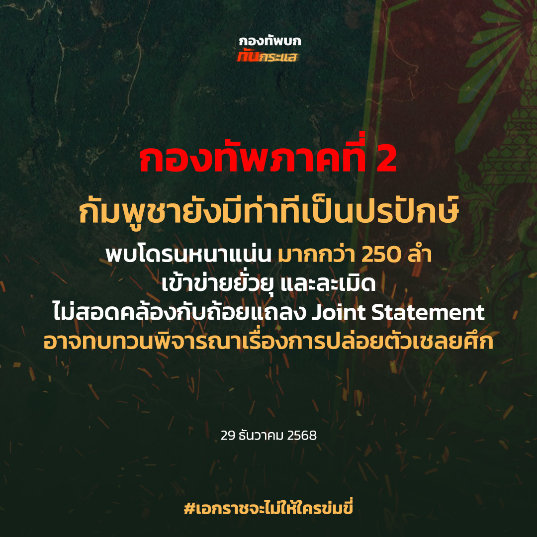 กองทัพภาคที่ 2 แจ้งพบโดรนหนาแน่น มากกว่า 250 ลำ เข้าข่ายยั่วยุและละเมิด - แจ้งประชาชนเดินทางกลับสู่ภูมิลำเนาได้ตามปกติ