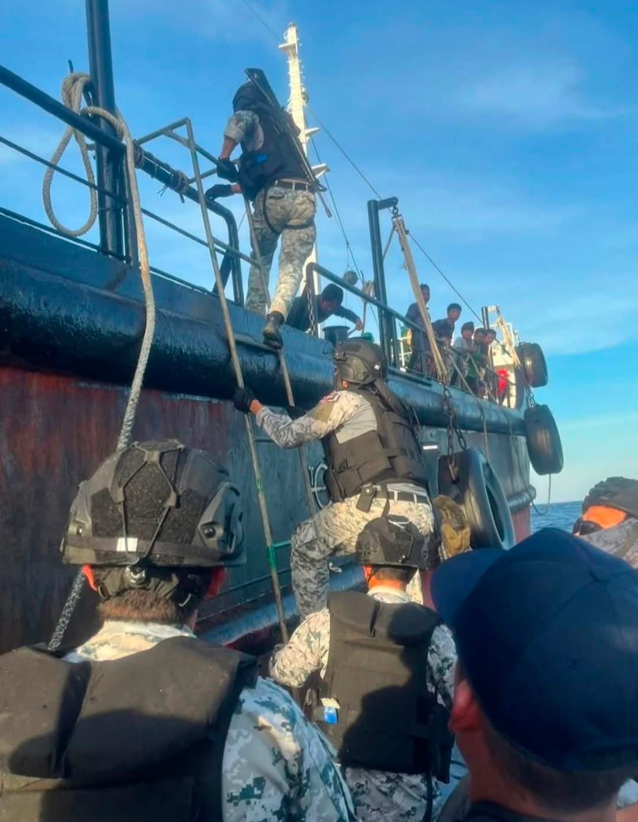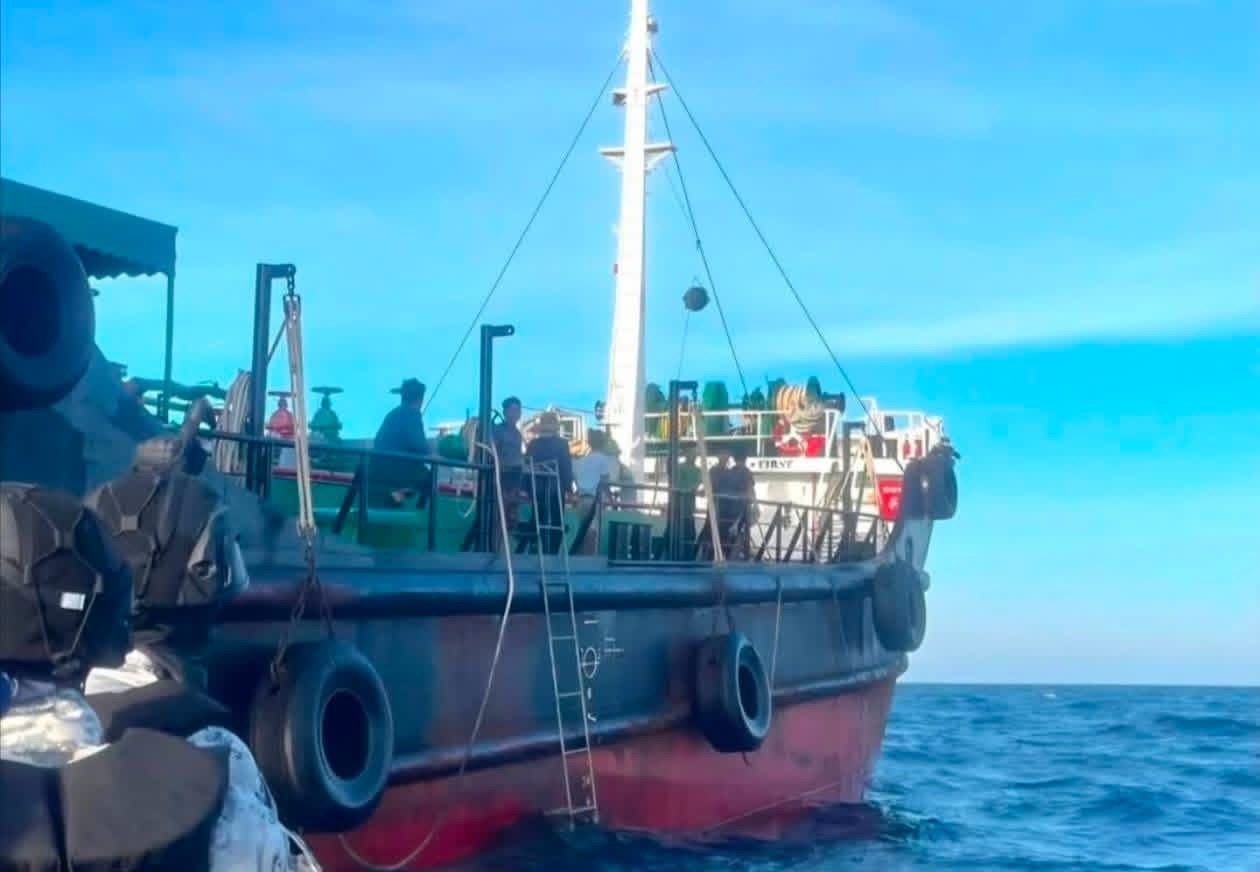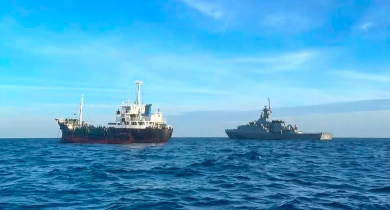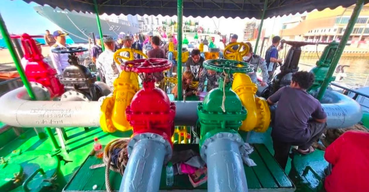 กระทั่งวันที่ 27 ธ.ค. 2568 เวลา 16.00 น. เรือหลวงประจวบคีรีขันธ์ตรวจพบเรือต้องสงสัยลอยลำอยู่ห่างจาก เกาะเสม็ดประมาณ 50 ไมล์ทะเล ไม่แสดงชื่อเรือ เลขทะเบียน ไม่ชักธงชาติ และไม่เปิดระบบ AIS จึงเข้าควบคุมและตรวจค้น จากการตรวจสอบพบลูกเรือรวม 8 คน (ไทย 3 เมียนมา 1 กัมพูชา 4) ไม่มีเอกสารประจำตัว เอกสารการทำงาน และเอกสารประจำเรือ ตรวจพบน้ำมันดีเซลในระวางเรือประมาณ 10,000 ลิตร โดยให้การไม่ตรงกัน ไต๋เรืออ้างว่ารับจ้างขนน้ำมันจากน่านน้ำมาเลเซียเข้ามาในประเทศไทย