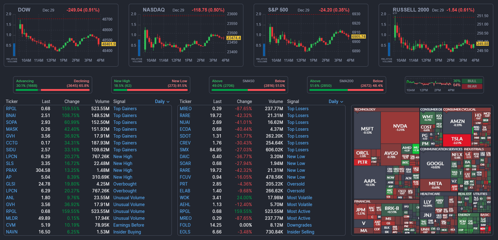 ตลาดหุ้นสหรัฐปิดลบ หุ้นเทคโนโลยีอ่อนตัวก่อนเทศกาลปีใหม่ ทองร่วงหนัก