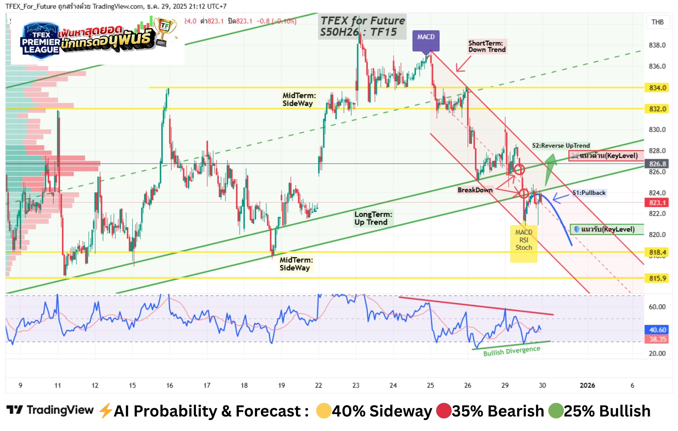 ⚔️แนวต้าน (Resistant) : 828-829 (จุดร่วม 8 Indicators)