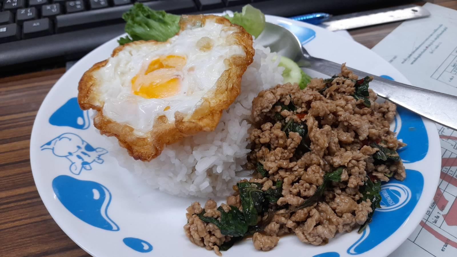 กระเพราหมูสับ ไข่ดาวไม่สุกนะ