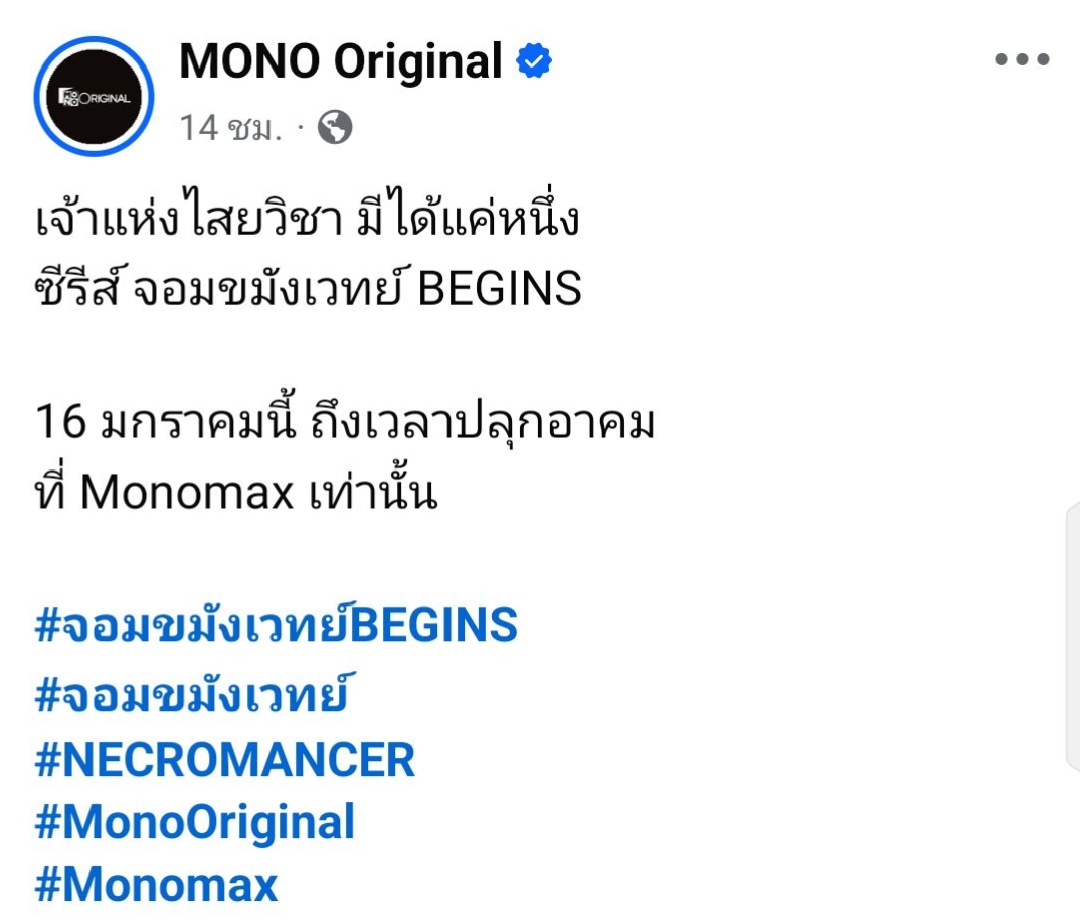 📿 เจ้าแห่งไสยวิชา มีได้แค่หนึ่ง 📌 16 มกราคมนี้ ถึงเวลาปลุกอาคม 🔴 ที่ Monomax เท่านั้น