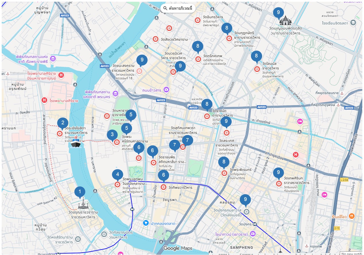 อุตส่าห์ไปทำแผนที่มาเลยนะ 9 วัด ครบ จบแน่นอนใน 3 ชั่วโมงค่ะ ให้ไปเช้า ๆ นะ 06.00 - 07.00 น. ออกได้เลยสายๆ แดดร้อนมาก
