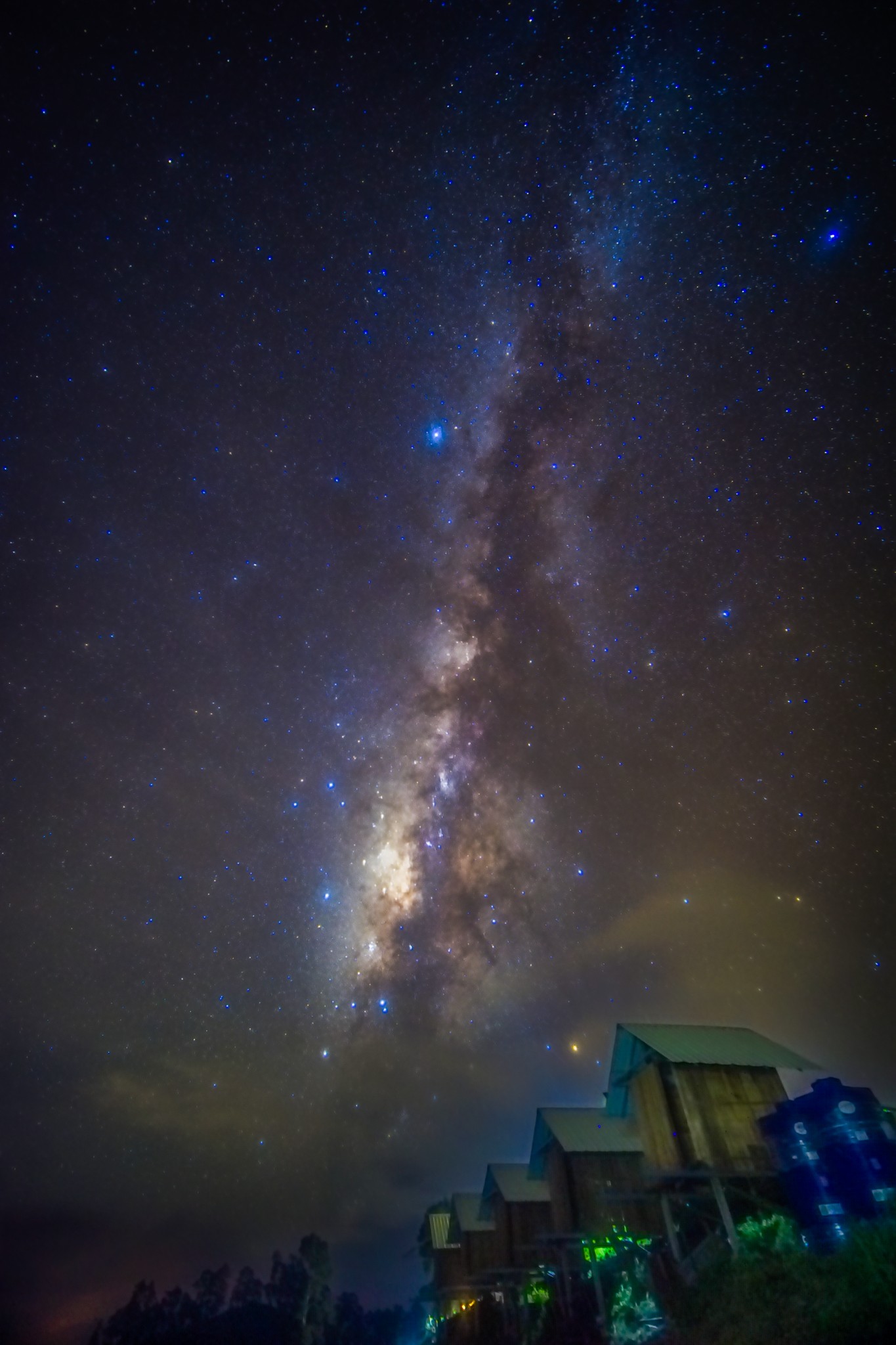 เลยต้องเดินหามุม โดยเดินลงมาบริเวณทางขึ้น จะมีที่พักที่ไม่มีนักท่องเที่ยวมาพักน่าจะกำลังปรับปรุง เลยมืดพอให้ได้ถ่ายรูปทางช้างเผือกได้บ้าง