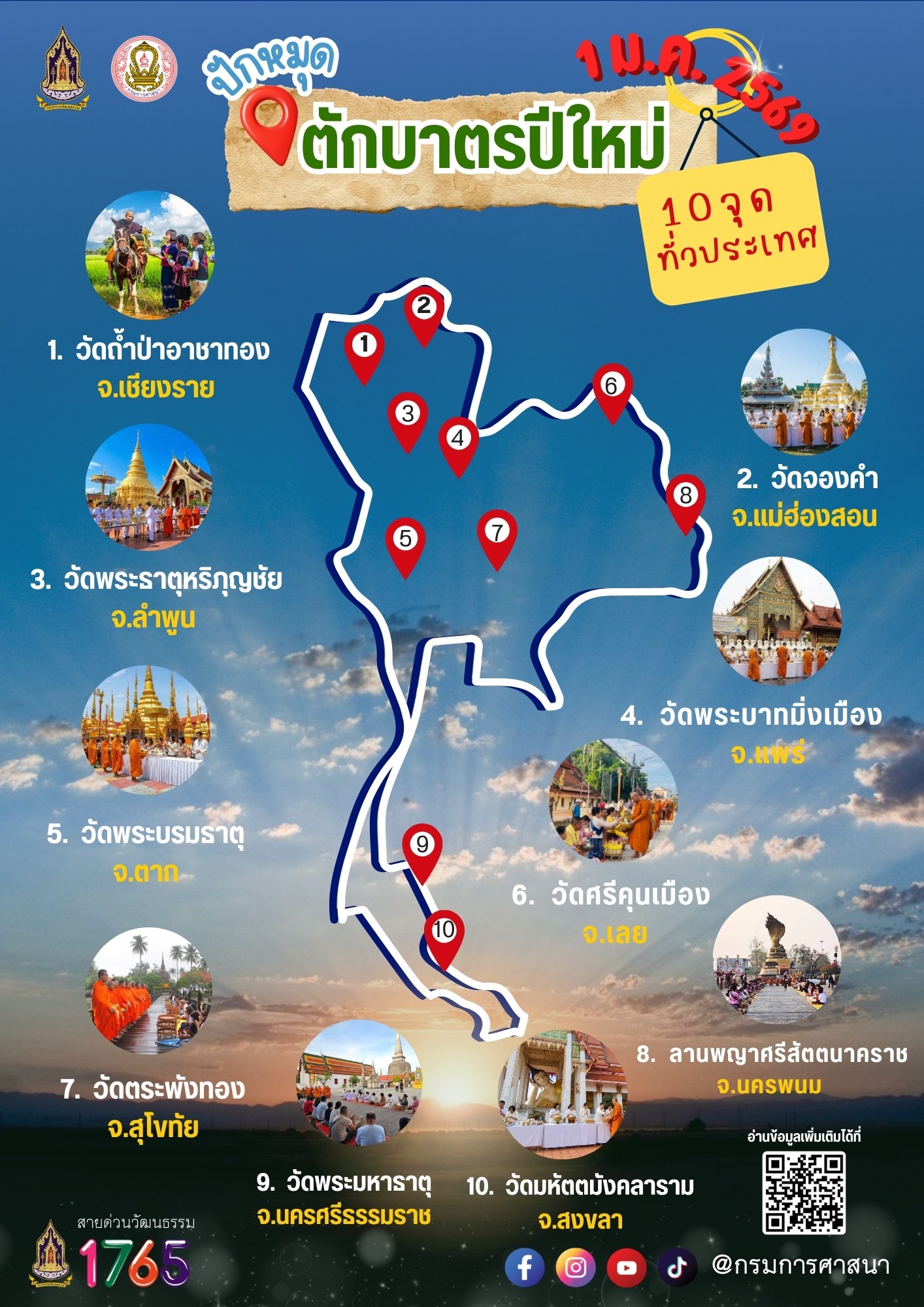 เชิญชวนพุทธศาสนิกชนร่วมตักบาตรรับปีใหม่ 10 จุดทั่วไทย เสริมสิริมงคล สืบสานวิถีพุทธ ส่งท้ายปีเก่า ต้อนรับปีใหม่ 2569