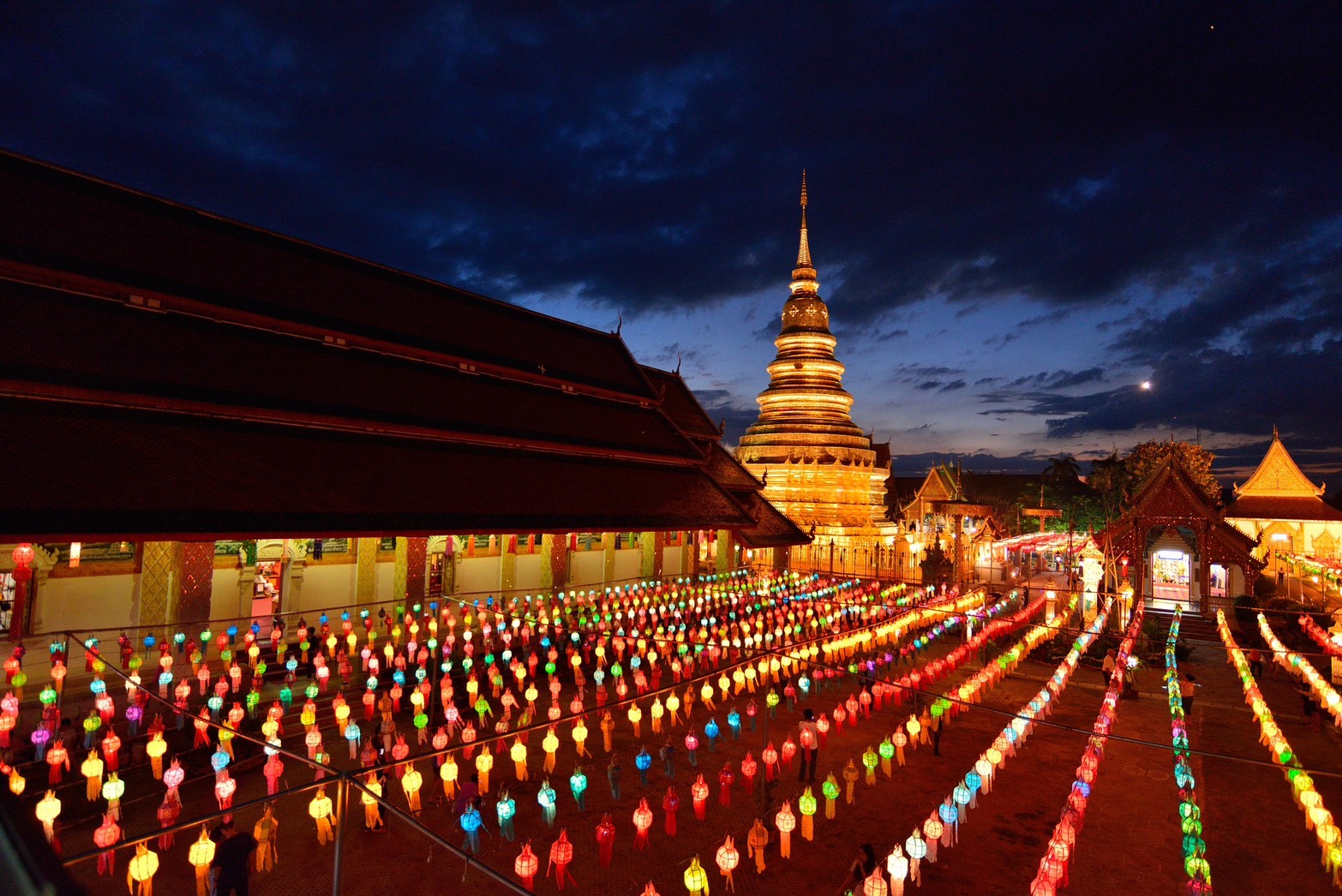 3. วัดพระธาตุหริภุญชัย จังหวัดลำพูน เป็นปูชนียสถานสำคัญของภาคเหนือ และเป็นศูนย์รวมจิตใจของชาวล้านนา โดยมีองค์พระบรมธาตุสีทองอร่ามเป็นที่ประดิษฐานพระบรมสารีริกธาตุ และเป็นพระธาตุประจำปีเกิดของผู้เกิดปีระกา การตักบาตรรับปีใหม่ ณ วัดแห่งนี้ จึงถือเป็นการเสริมสิริมงคลอันสูงส่ง พร้อมทั้งเปิดโอกาสให้ประชาชนได้น้อมจิตระลึกถึงพระพุทธคุณ ท่ามกลางสถาปัตยกรรมล้านนาที่งดงามและทรงคุณค่าทางประวัติศาสตร์