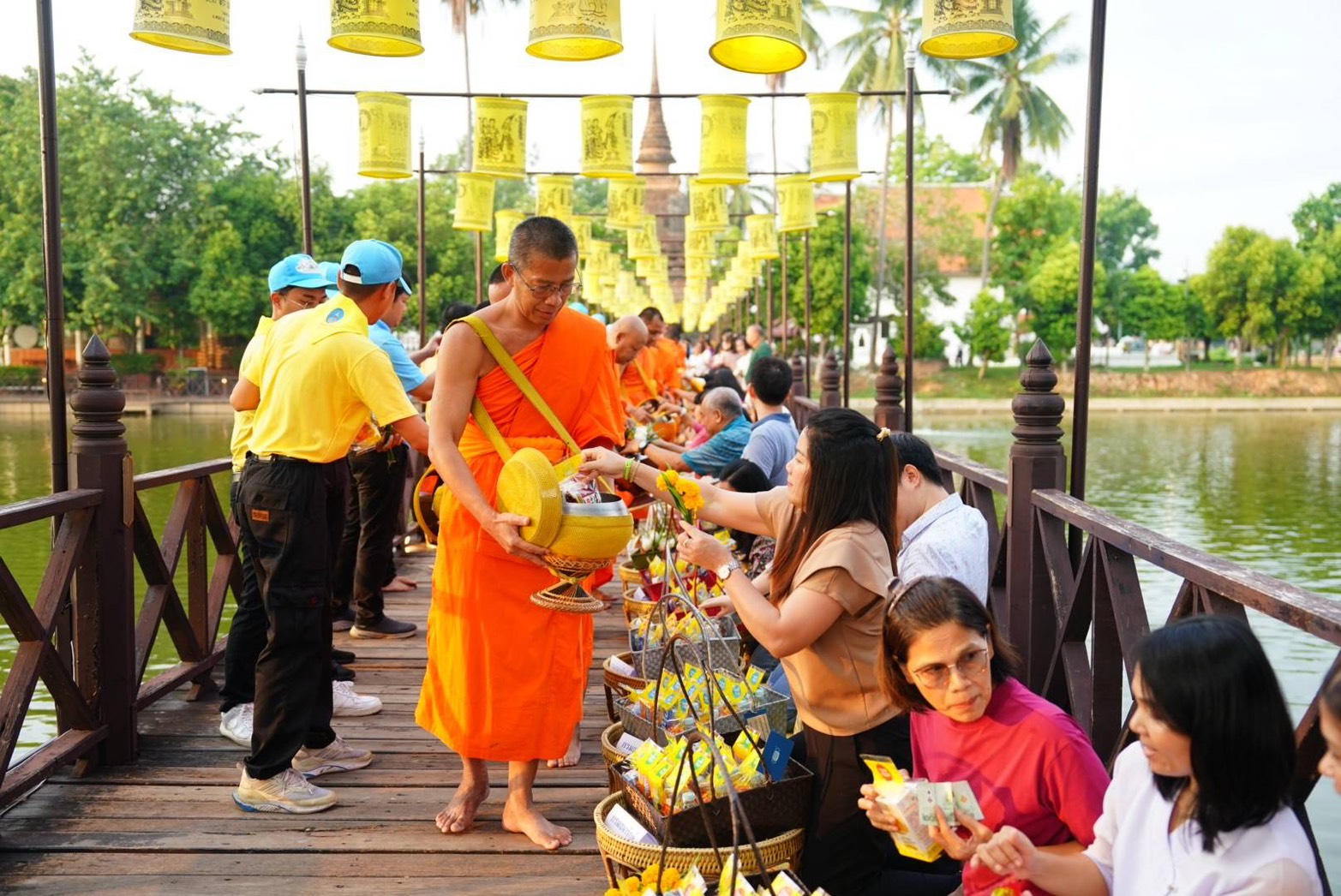 กรมการศาสนา นำพุทธศาสนิกชนเข้าวัดปฏิบัติธรรมวันธรรมสวนะ “ศรัทธาอิ่มบุญ อุดหนุนชุมชน ตักบาตรสะพานมอญ”ส่งเสริมภูมิปัญญาท้องถิ่น น้อมนำหลักธรรมทางพระพุทธศาสนาในการดำเ
