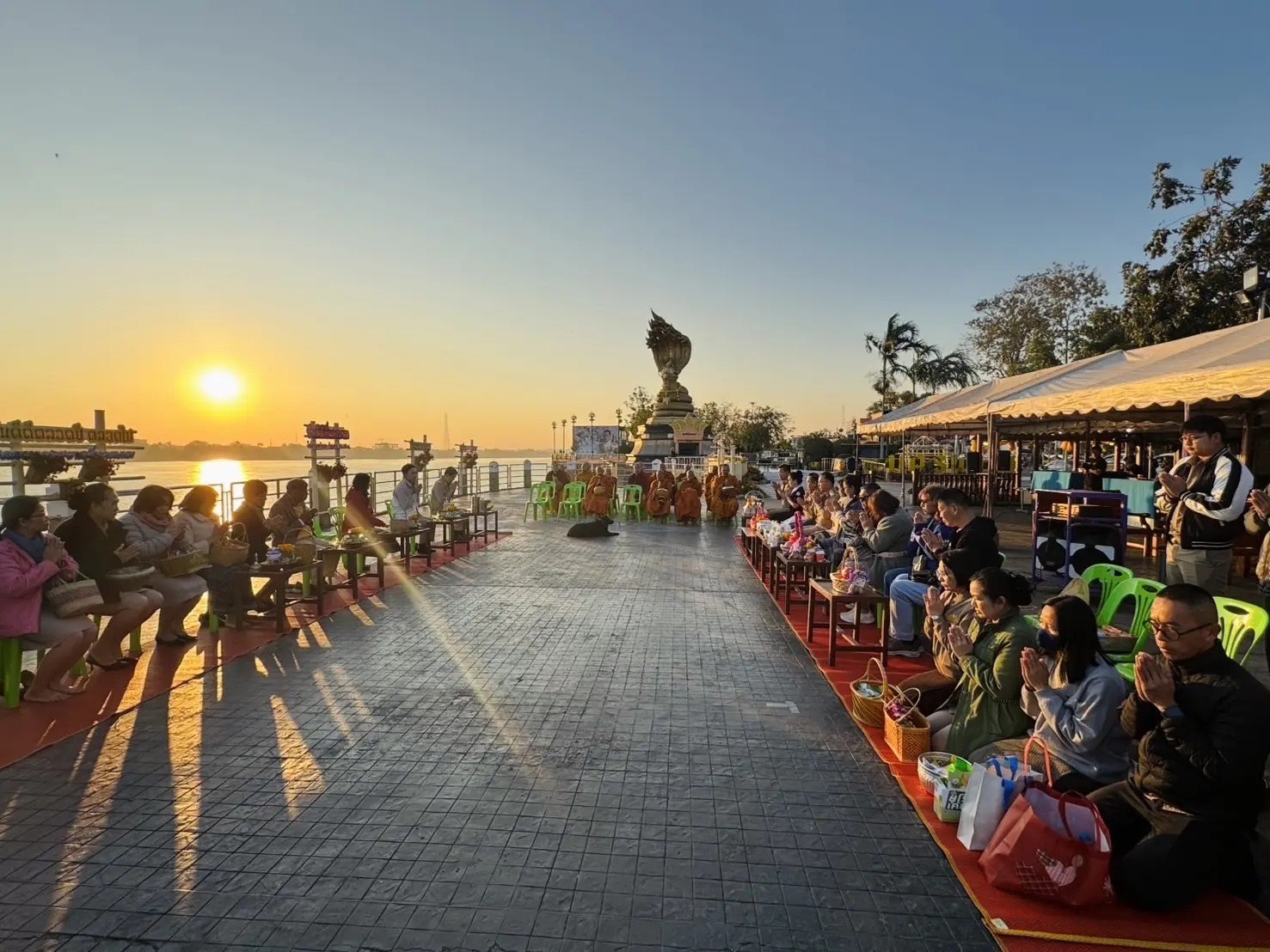 8. ลานพญาศรีสัตตนาคราช จังหวัดนครพนม ตั้งอยู่ริมฝั่งแม่น้ำโขง เป็นแลนด์มาร์คแห่งศรัทธาและความเชื่อของชุมชนลุ่มน้ำโขง กิจกรรมตักบาตรรับปีใหม่ ณ บริเวณแห่งนี้ สะท้อนความผูกพันระหว่างพระพุทธศาสนากับความเชื่อเรื่องพญานาคในฐานะผู้พิทักษ์พระพุทธศาสนาและลุ่มน้ำโขง สร้างบรรยากาศแห่งความศรัทธา ความอุดมสมบูรณ์ และความเป็นสิริมงคลแก่ผู้ร่วมกิจกรรม