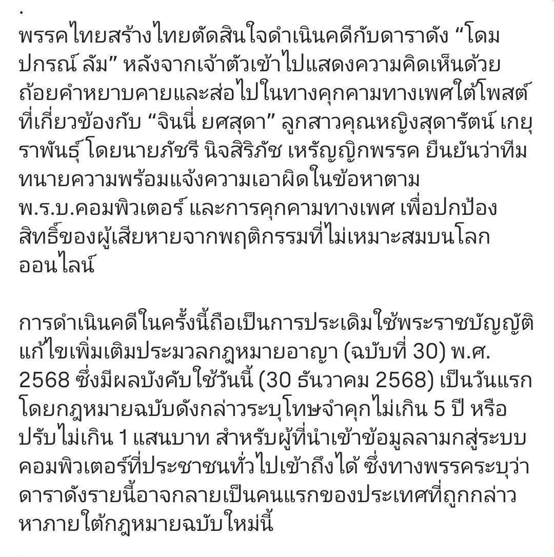 🧐 พรรคไทยสร้างไทยประเดิม พ.ร.บ. ใหม่! ฟ้องดาราดัง “โดม ปกรณ์ ลัม”