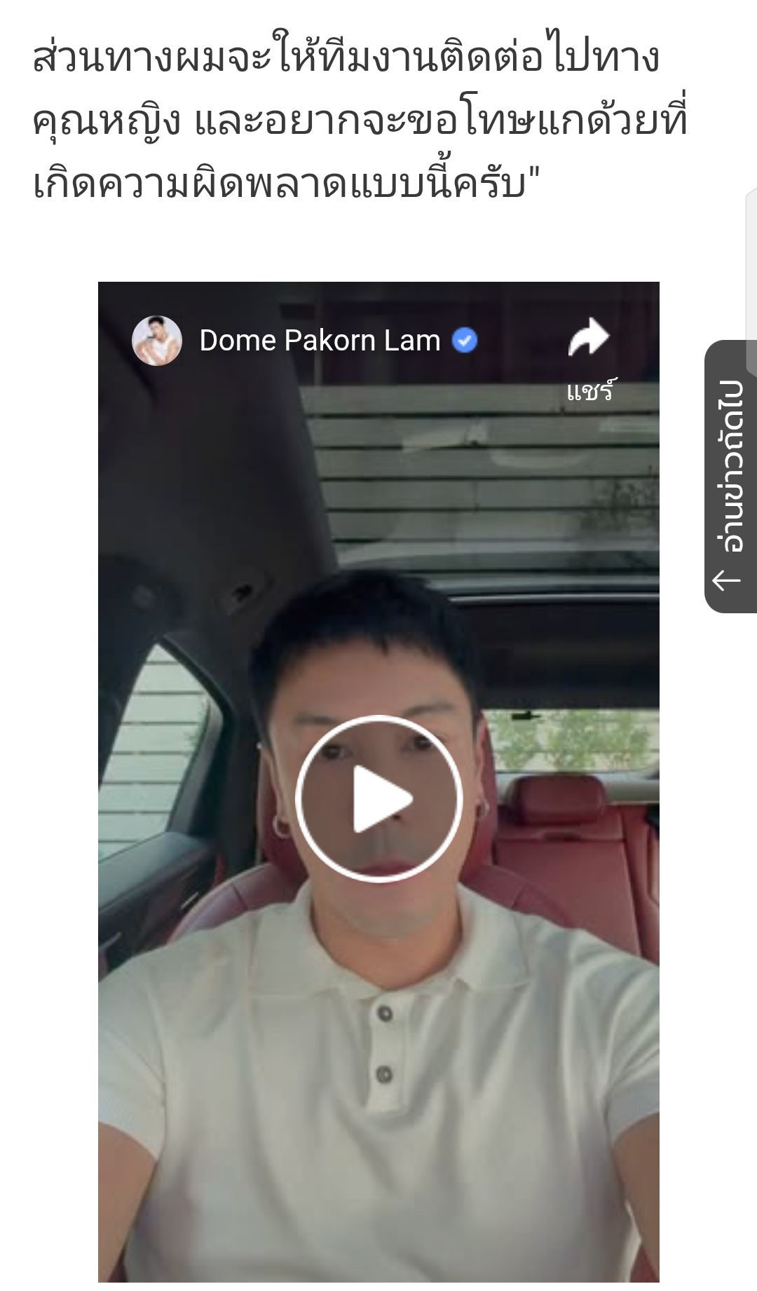 "สวัสดีทุกคนนะครับ อันดับแรกเลย ผมอยากจะชี้แจงเรื่องที่โพสต์นะครับ ก็อยากจะขอโทษก่อนเลยนะครับ
