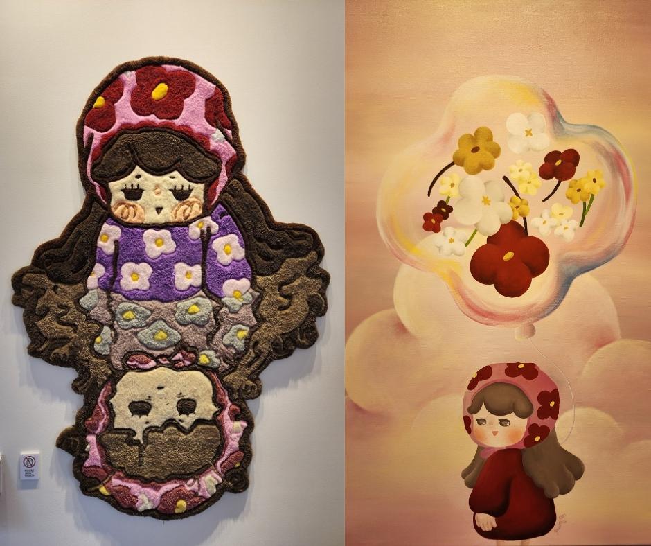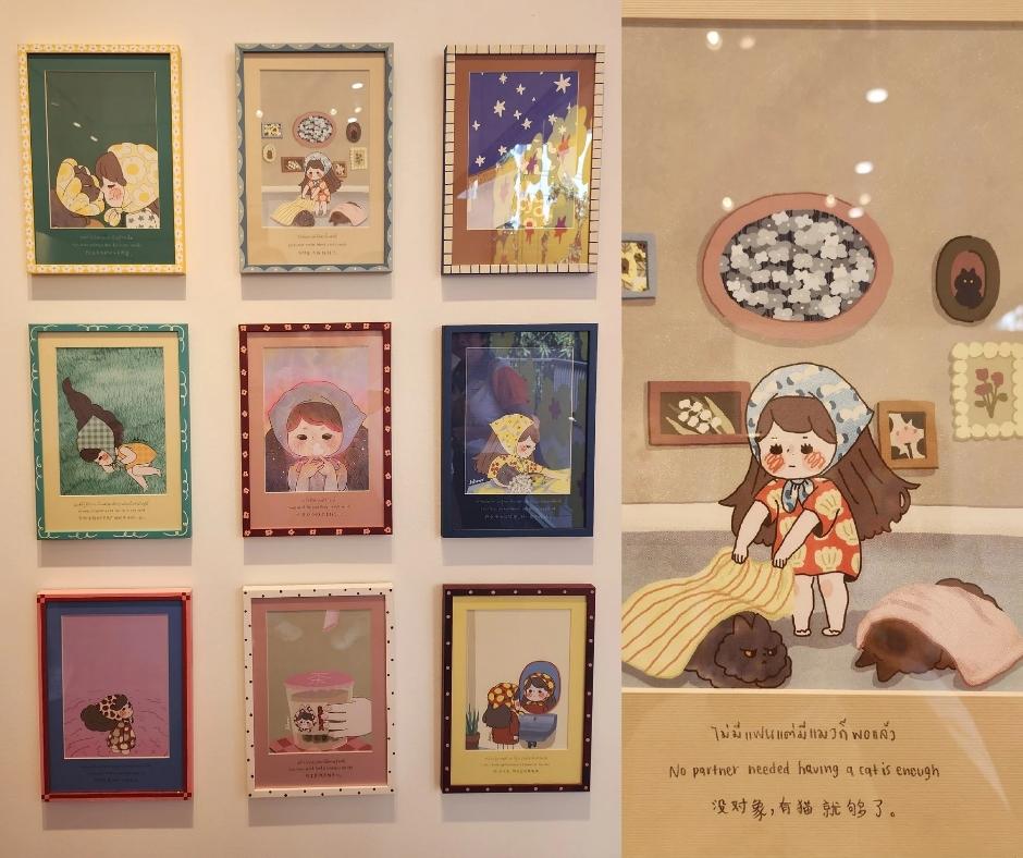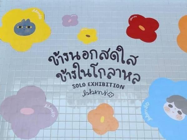 เราตั้งใจมาดู นิทรรศการ “ข้างนอกสดใส ข้างในโกลาหล” ค่ะ เพราะเราเองเป็นแฟนของเพจ 'บ่นบ่น' เด็กผู้หญิงมัดดังโงะ ตอนนี้น้องโตขึ้นแล้วค่ะ มีจัดงานนิทรรศการเล่าเรื่องราวในชีวิต เราก็ปักหมุดมาเลย